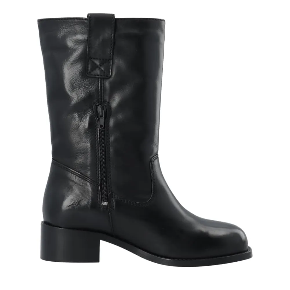 Cashott Casvilma Pull On Mid Cut støvle til dame i sort. Klassisk sort støvle til dame med overdel i skind og enkle detaljer, der giver et tidløst og stilfuldt udtryk. Den funktionelle lynlås på indersiden gør støvlen nem at tage af og på. Indvendigt sørger den bløde og varme foring samt den behagelige sål for høj komfort. Den cirka 4,5 cm høje blokhæl giver et elegant løft uden at gå på kompromis med komforten.