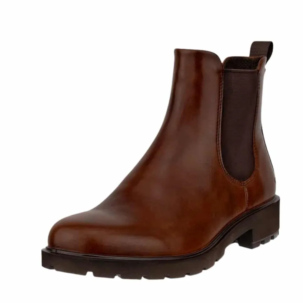 Ecco Metropole Vienna W støvle til dame i brun. Denne elegante støvle i brun skind er designet til dig, der ønsker både stil og komfort. Modellen har elastik i siderne, så den er nem at få af og på, og indvendigt finder du en blød Dual Fit indersål, der kan tilpasses efter behov. Takket være Ecco Fluidform™ får du en fleksibel støvle, der bevæger sig naturligt med foden, mens ydersålens mønster øger skridsikkerhed.
