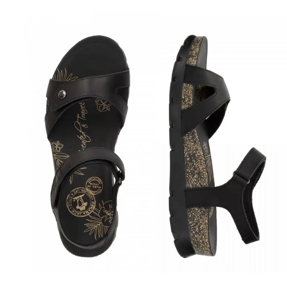 Panama Jack Sulia Basics B2 sandal til dame i sort. Forkæl dine fødder med disse elegante og komfortable damesandaler. Fremstillet i blødt sort nappa læder med en fleksibel pasform, sikrer de komfort hele dagen. Sandalerne har to velcrolukninger, så du nemt kan justere dem efter din fod. Den anatomiske indersål giver støtte, mens den lette og slidstærke polyuretansål sikrer god bevægelighed. Med en hælhøjde på 4 cm kombineres elegance og stabilitet.