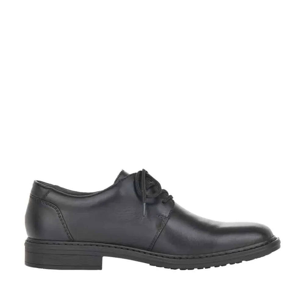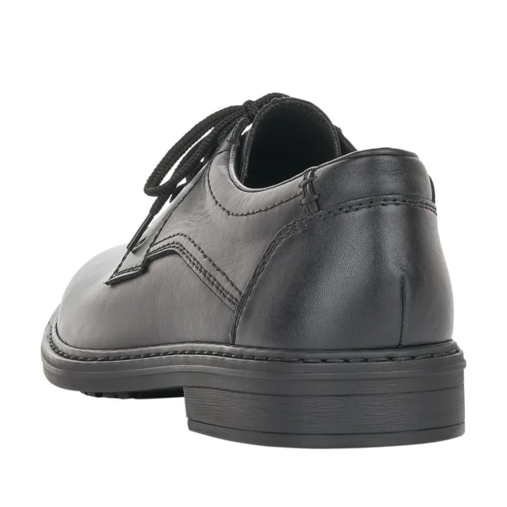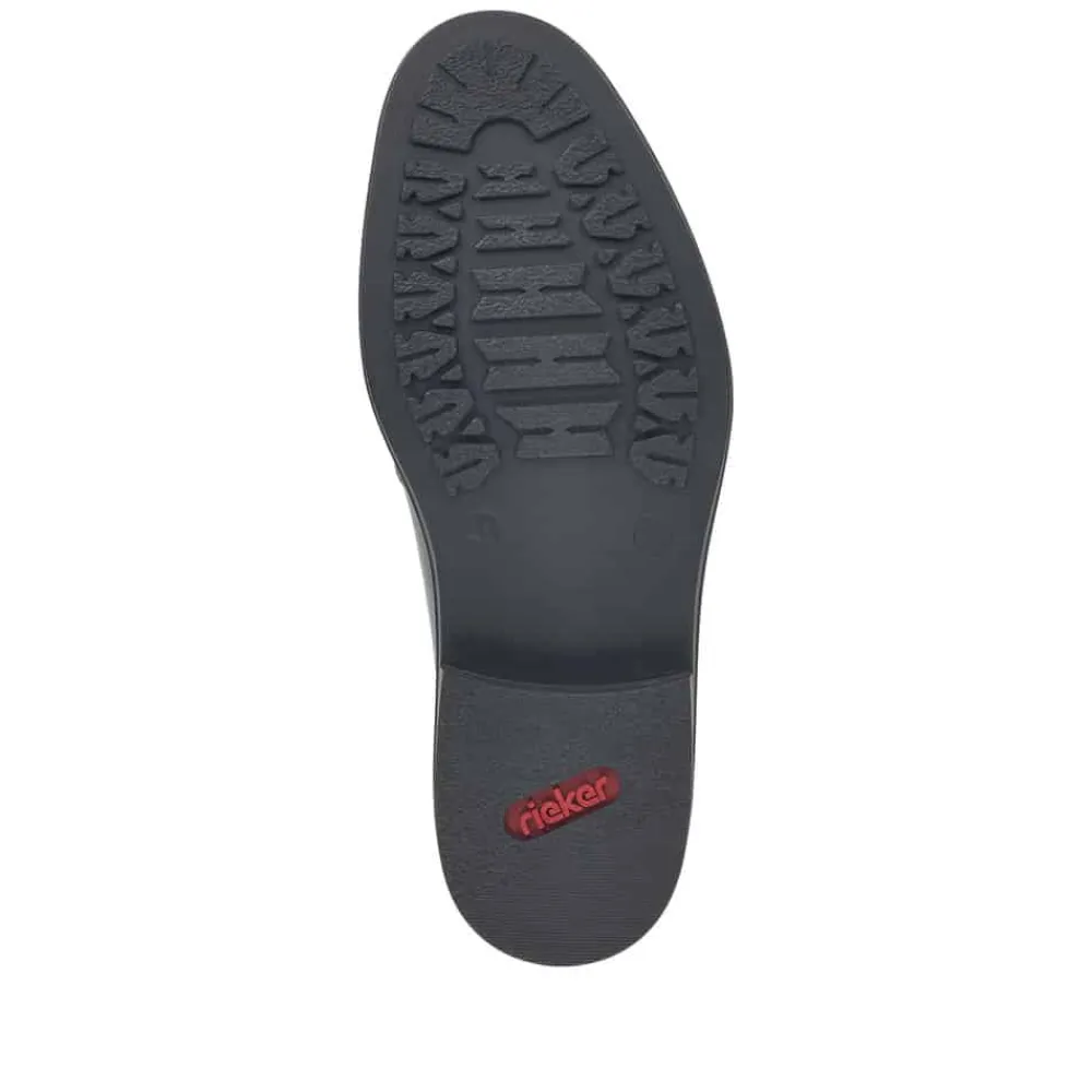 Rieker sko i sort til herre. Klassisk sko med en blød skindoverdel. Skoen er udstyret med snørebånd foran så du nemt kan justerer den efter din fod. Modellen har en lille hæl som giver den et sofistikeret look. Skoen har ekstra vidde og er super let, hvilket er med til at øge komforten. Sidst men ikke mindst har skoen en lækker stødabsorberende sål samt en sål med gode mønstrer under, der bidrager til en øget skridsikkerhed.