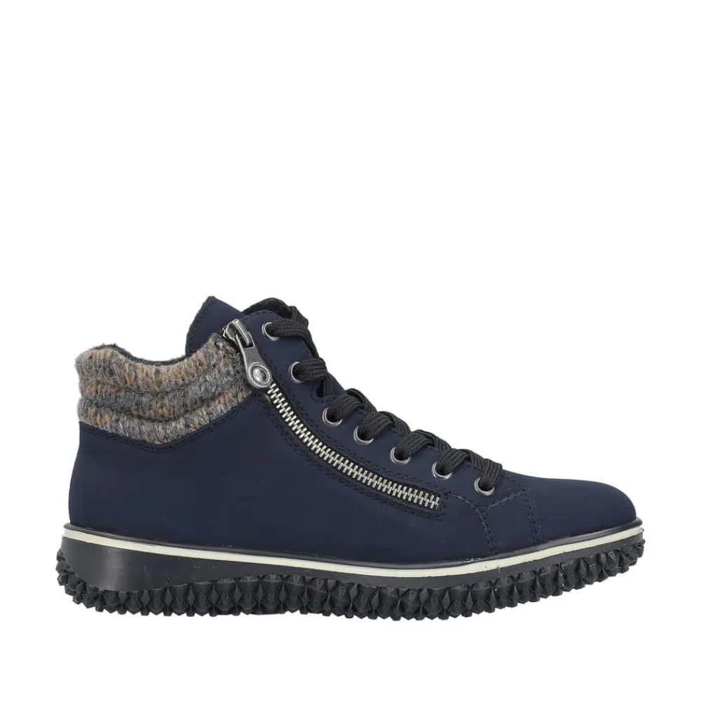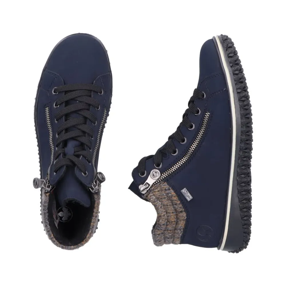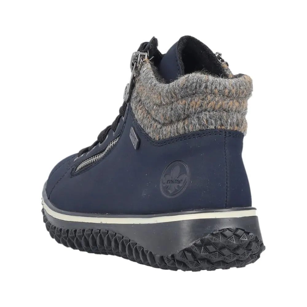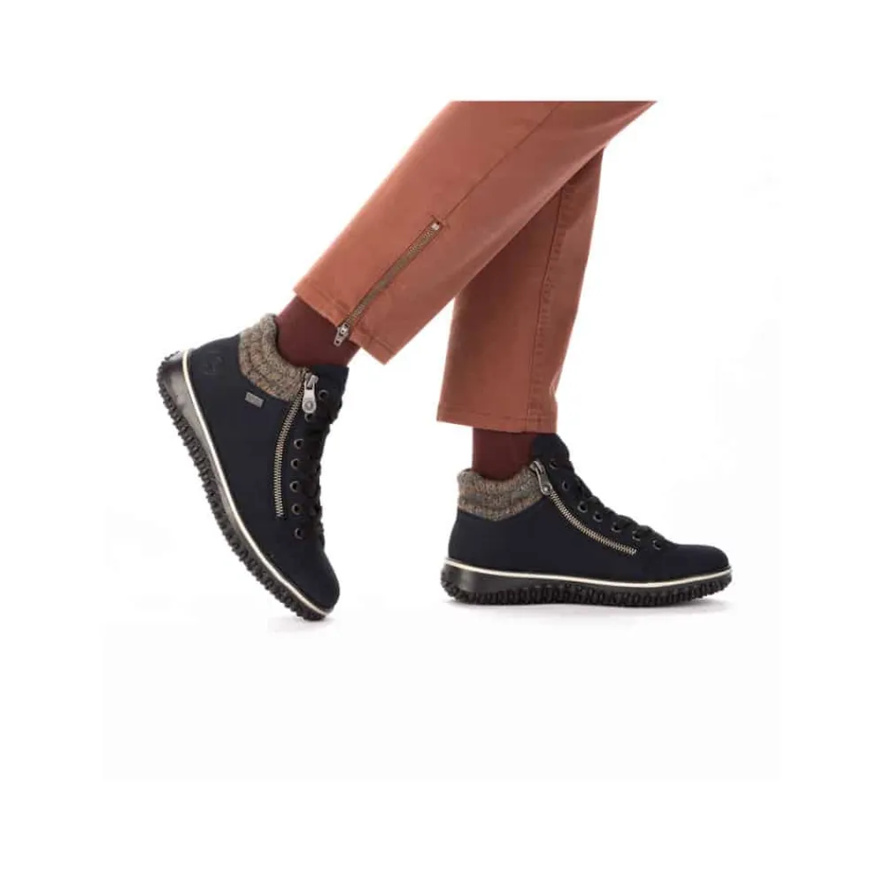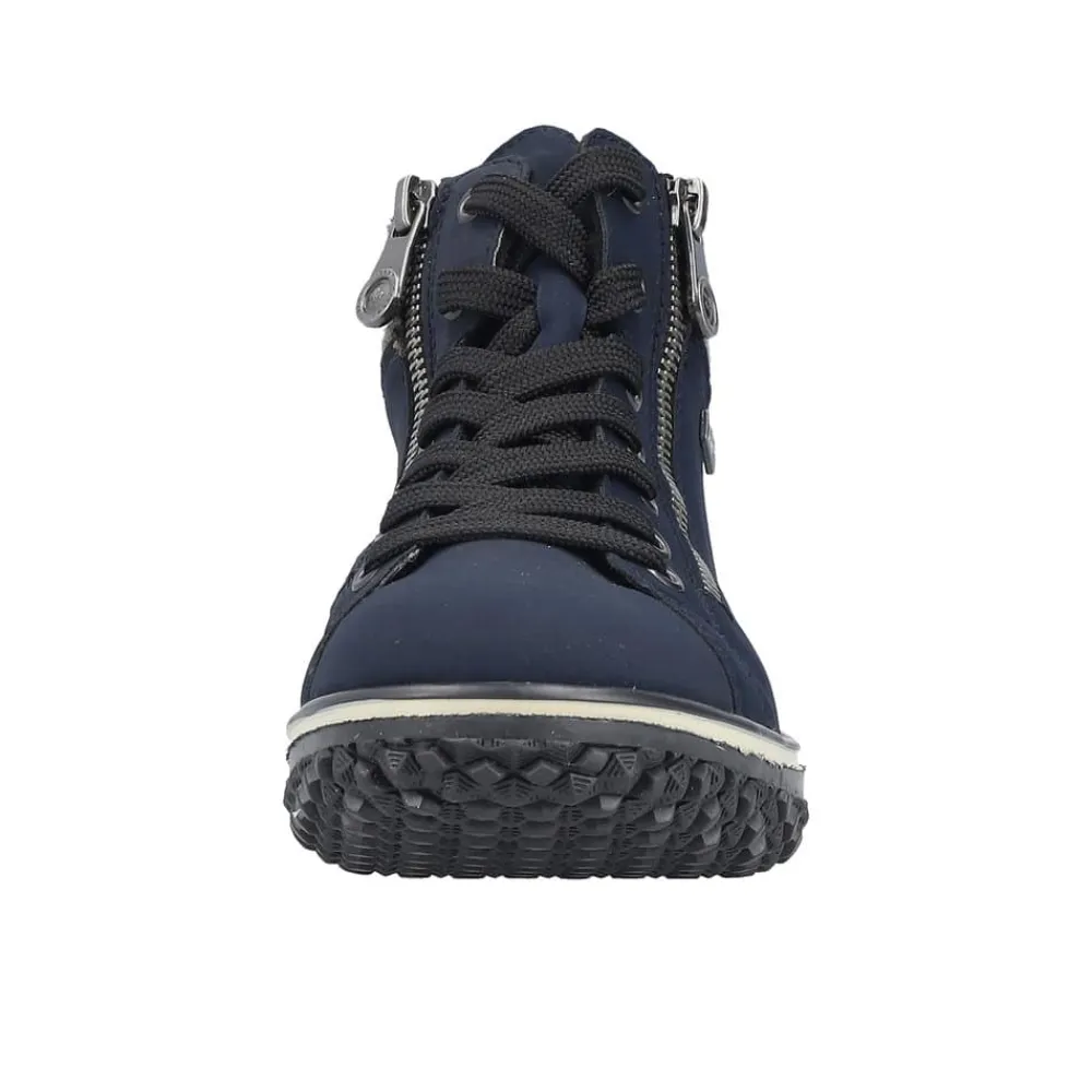 Rieker støvle til dame i blå. Denne støvle kombinerer stil og komfort, hvilket gør den perfekt til hverdagsbrug. Modellen er udstyret med både snørebånd og funktionelle lynlåse, så støvlen er nem at tage af og på. Indvendigt finder du en blød sål og en let foring, der giver høj komfort hele dagen. Takket være Rieker-Tex er støvlen kraftigt vandafvisende, mens den mønstrede ydersål giver øget stødabsorbering og skridsikkerhed.