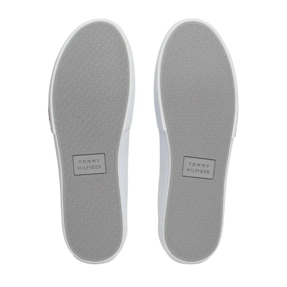 Tommy Hilfiger Vulc Street sneakers til herre i hvid. Giv dit outfit et løft med disse lækre sneakers med en blød skindoverdel, der er ideelle til alle årstider. Overdelen af skind øger kvaliteten samtidig med at det giver et stilfuldt udseende. Indvendigt har skoen en blød og udtagelig sål, for optimal komfort dagen lang. De markerede syninger sammen med de fine Tommy Hilfiger logo’er, giver skoen et ekstra strejf af stil. Ydersålen er lavet af slidstærkt gummi og gør dem både funktionelle og komfortable.
