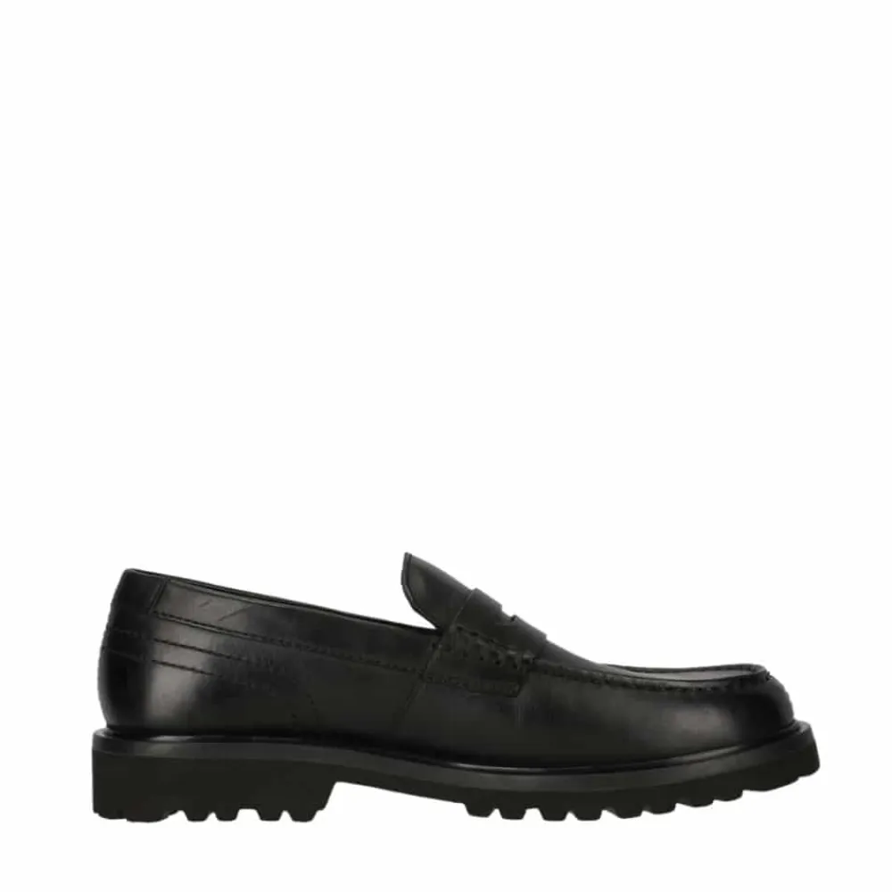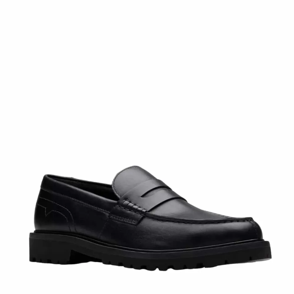 Clarks Berwick LO loafers til herre i sort. Moderne herreloafers i sort med en læderoverdel, der giver et elegant og tidløst look. Skoen er let at tage af og på, mens den bløde indersål sørger for behagelig komfort hele dagen. Den mønstrede ydersål giver stabilitet og øget skridsikkerhed i hvert skridt.