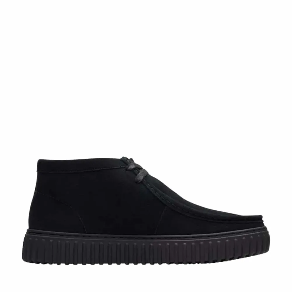 Clarks Torhill HI støvle til herre i sort. Moderne støvle i en klassisk sort farve med enkle detaljer der giver et stilfuld look. Støvlen har en overdel i ruskind og snørebånd foran der giver en justerbar pasform. Indvendigt bliver du mødt af en blød og udtagelig indersål, der giver optimal komfort. Den rillede plateausål giver øget støtte dagen lang og et ekstra strejf af stil.