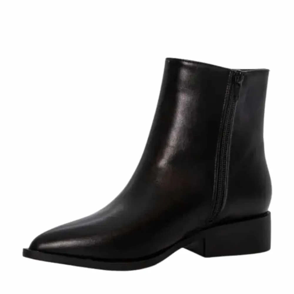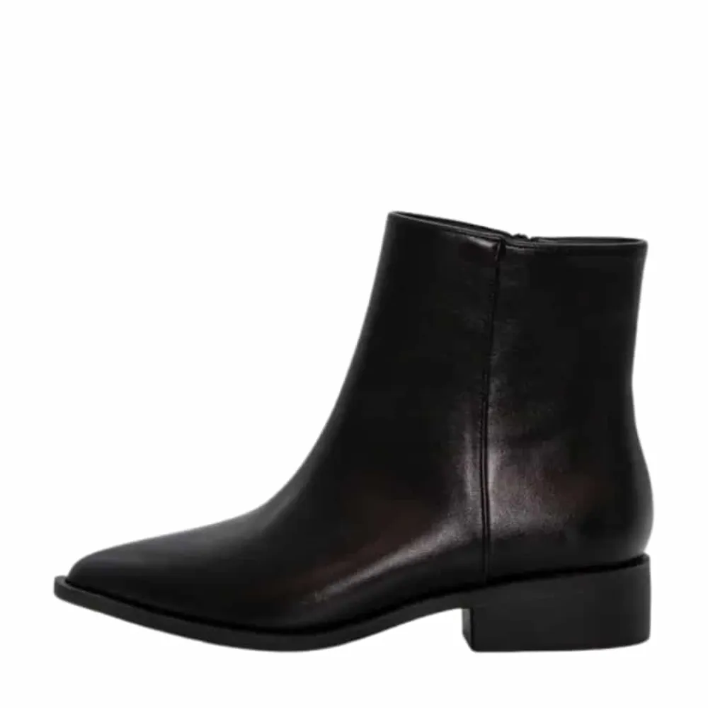 Duffy Fulgatore Nove støvle til dame i sort. Denne sorte støvle er en klassisk og tidløs model med en elegant spids tå, der tilfører et moderne touch. Støvlen har en funktionel lynlås på indersiden, som gør den nem at tage af og på. Indvendigt mødes du af en blød sål, som giver komfort dagen lang. Og den lille hæl på 3 cm giver et feminint løft, mens ydersålens rillet mønster øger skridsikkerheden.