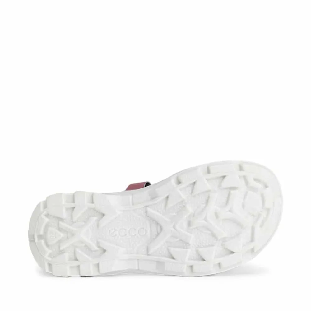 Ecco Biom Raft sandal til børn i rosa/lyserød. Modellen har en flot rosa farvekombination og er i en dejlig blød og let kvalitet samt har tre regulerbare remme med velcro, der gør det nemt for barnet at komme i/af sandalen. Sandalen er konstrueret med en anatomisk formet læst og præsenterer en hurtigtørrende syntetisk overdel, der kombineres med åndbart tekstil. Der er Flex Groves indlejret i ydersålen tilføjer ekstra skridsikkerhed til denne stilfulde og komfortable sandal til de små børnefødder.