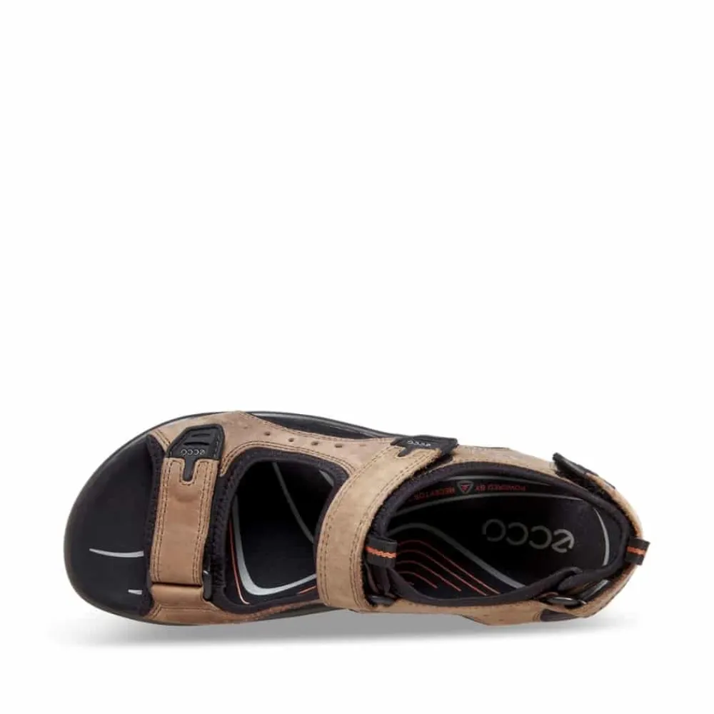 Ecco Offroad Andes II sandal til herre i brun. Disse lette og komfortable sandaler er perfekte til både byvandring og udflugter i naturen. Den slidstærke gummiydersål giver et godt greb på forskellige underlag, mens den bløde nubuckoverdel med justerbare remme sikrer en behagelig pasform. Den formstøbte EVA-fodseng med mikrofiberforing giver ekstra stødabsorbering og stabilitet. Mellemsålen med PU-skum sørger for langvarig komfort hele dagen.