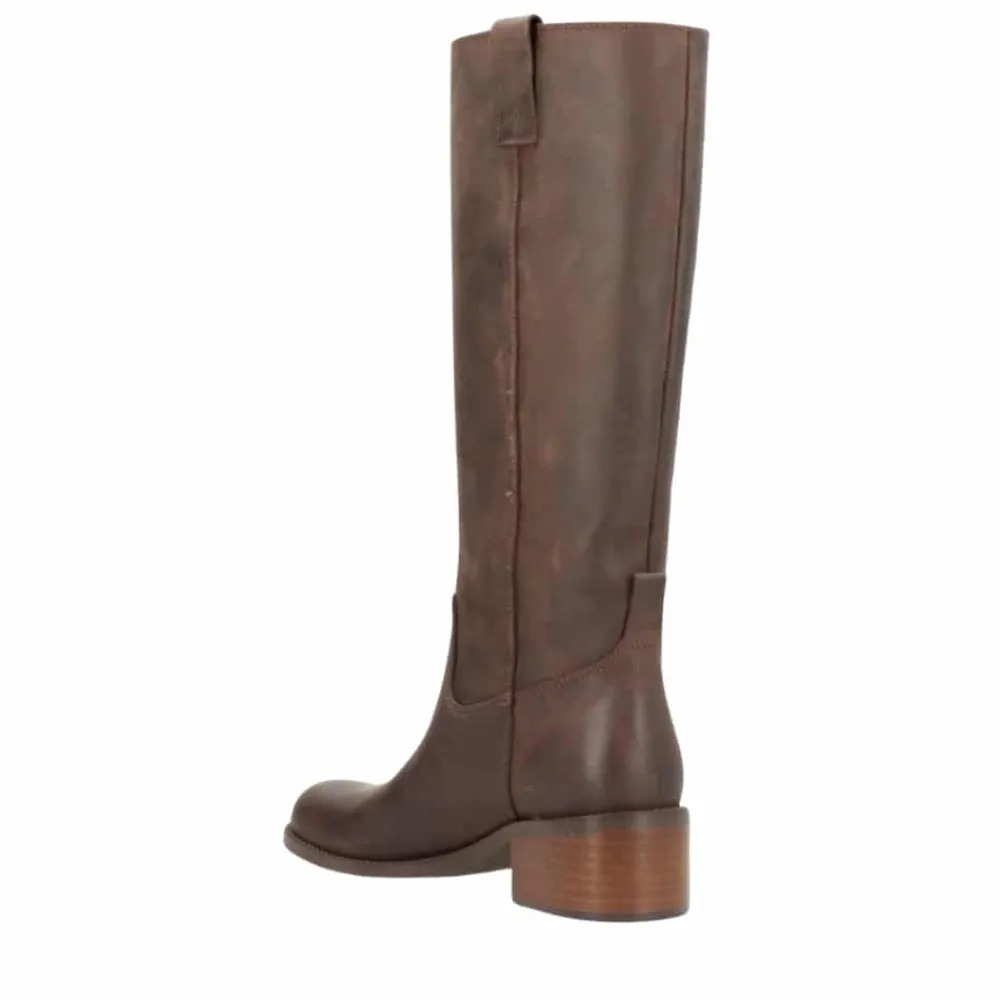 Phenumb Copenhagen Martina lang støvle til dame i mørkebrun. Denne støvle er et oplagt valg til dig, der ønsker at følge trenden med lange og moderne støvler. Støvlen er fremstillet i 100% blødt kernelæder, som bliver endnu smukkere med tiden og giver et eksklusivt udtryk. Indvendigt finder du glatskind og en blød indersål, der sikrer komfort hele dagen. Den chunky hæl på 5 cm giver et behageligt løft, så du får både stil og velvære. Med sin nemme påtagning og moderne look er støvlen perfekt til en stilbevidst garderobe.