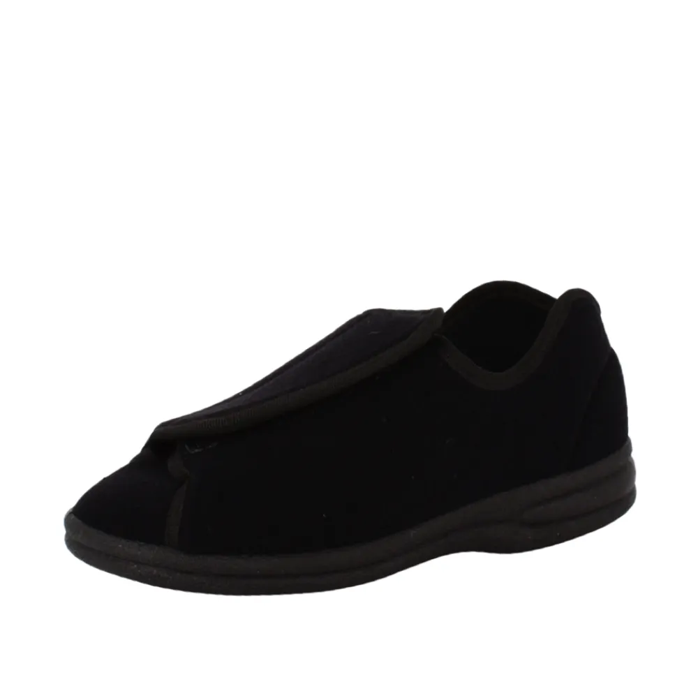 Podowell Hjemmesko i Sort Unisex. Dejlig let og blød hjemmesko, som er let at komme i/af. Podowell er en terapis specielt designet hjemmesko, til folk med hævede fødder og ankler. Modellen er super fleksible og lavet i et materiale med stræk, som giver dig mulighed for at få en skøn pasform. Her skabes der ekstra velvære til dine fødder, og dine tæer vil få en fantastisk frihed.
