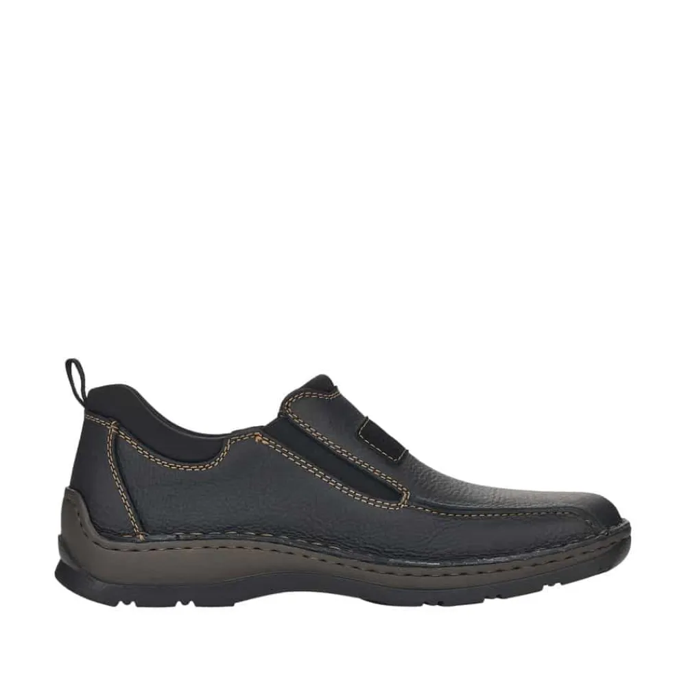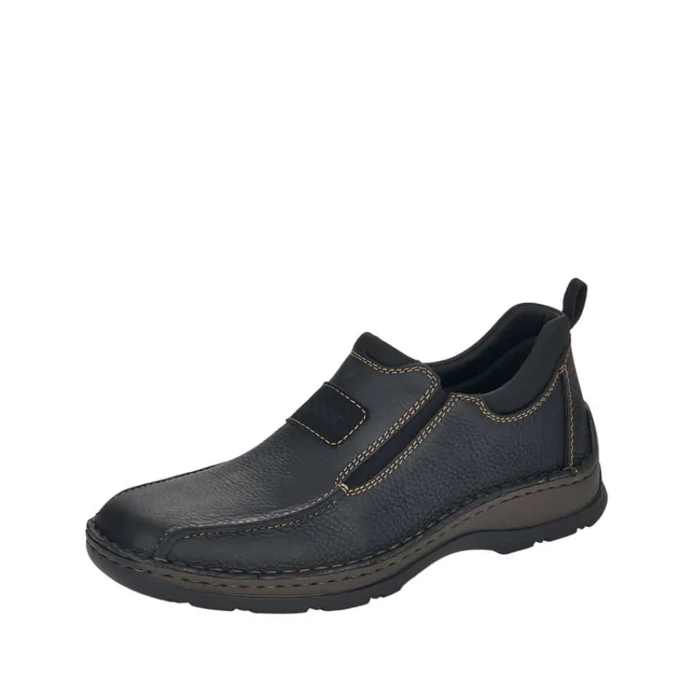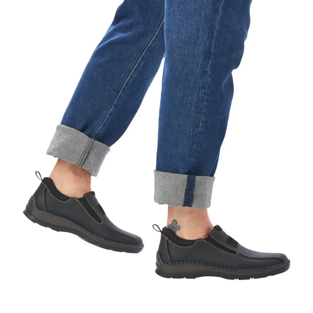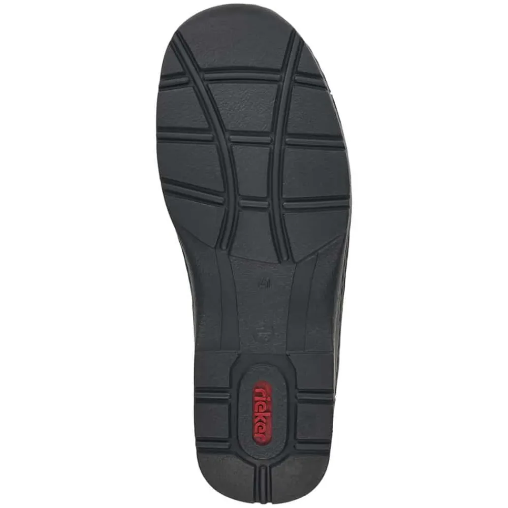 Rieker sko til herre i sort. Overdelen er fremstillet af behageligt skind, der omfavner din fod med elegance. Indvendigt er skoen foret med neoprenstof, der er både blødt og strækbart og strækker sig langs kanten for en ekstra dimension af komfort. Ydersålen er designet til at være fleksibel, blød og let, mens den stødabsorberende sål arbejder for at forøge komforten for dine fødder, så du kan nyde hvert skridt med lethed. Med ekstra vidde H-H½, så skoen er rummelig til ekstra brede fødder.