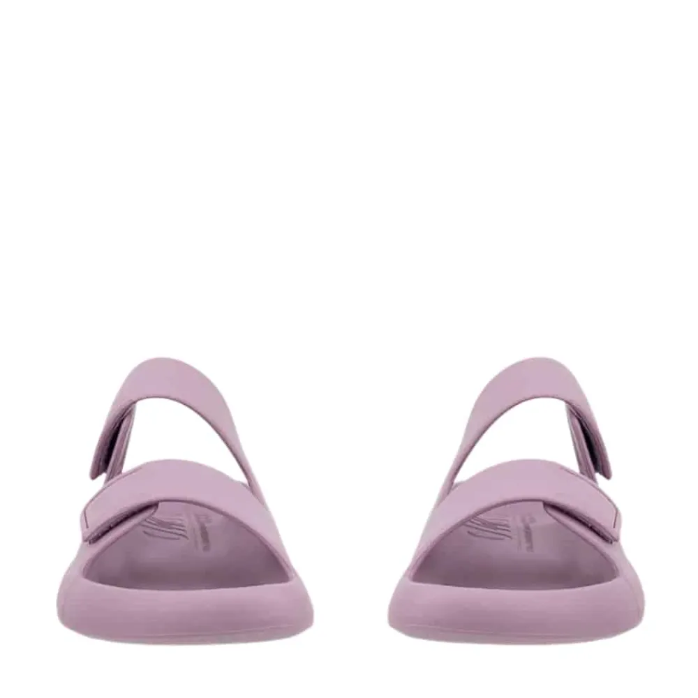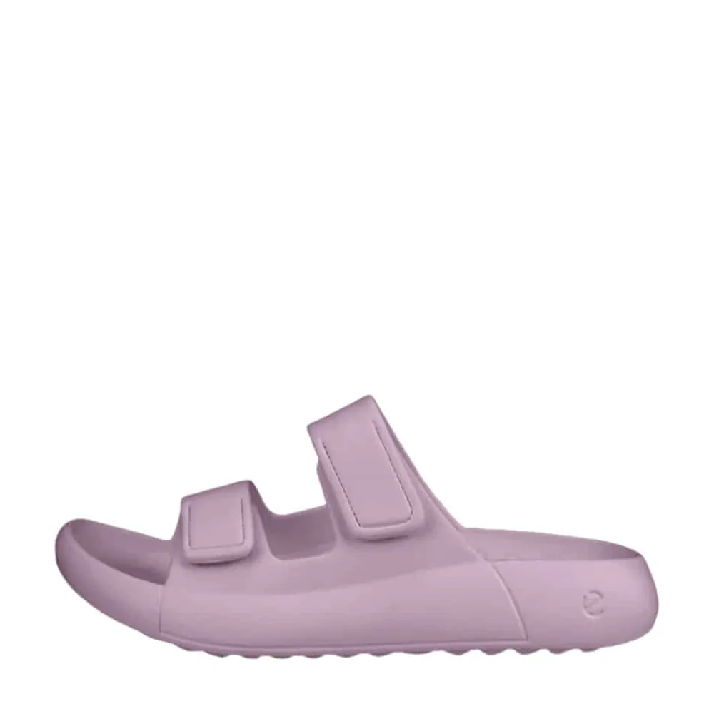 Ecco Cozmo E sandal til dame i lilla. Denne lette og fleksible sandal i en frisk lilla farve giver et stilfuldt udtryk. To velcroremme giver mulighed for at justere pasformen, mens slip-in designet gør den nem at tage af og på. Den bløde EVA-sål og Ecco Fluidform™ teknologi sikrer komfort hele dagen, og den rillet ydersål giver ekstra skridsikkerhed.
