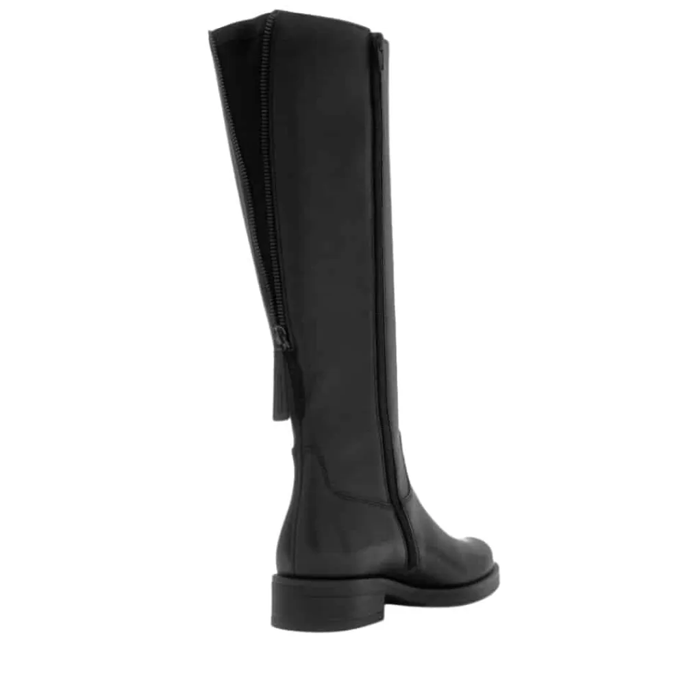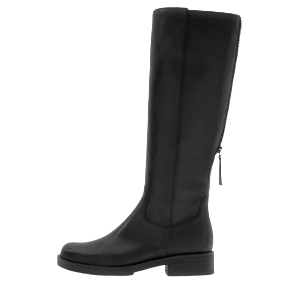 Gabor lang støvle til dame i sort. Elegant og klassisk støvle med skindoverdel og en stilfuld samt funktionel lynlås bagpå. Støvlen er designet med skaftvidde M, som giver en mere rummelig pasform. Modellen er desuden udstyret med en funktionel lynlås på indersiden, der gør støvlen nem at komme i og af. Indvendigt møder du en let foring og en blød udtagelig sål, som giver høj komfort dagen igennem. Ydersålen har et mønster, der giver øget skridsikkerhed.