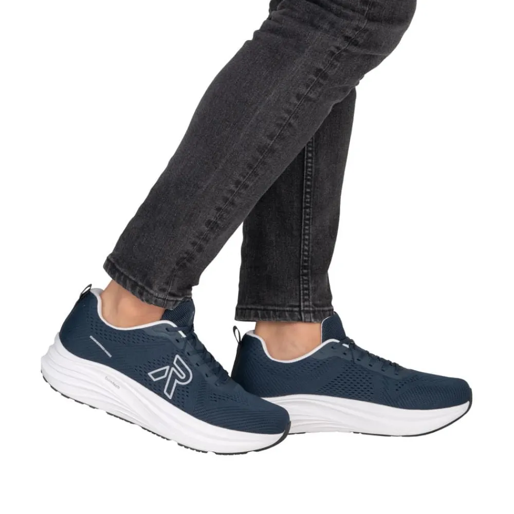 Rieker sneakers til herre i blå. Disse smarte sko med et sporty udtryk er et oplagt valg til den travle hverdag, hvor komfort og funktion er i fokus. Skoen har snørebånd, så pasformen nemt kan tilpasses efter foden. Indvendigt finder du en blød udtagelig indersål og ekstra bredde (H) som sikrer god rummelighed. Ydersålen giver øget støtte og skridsikkerhed, så skoen føles stabil dagen igennem.