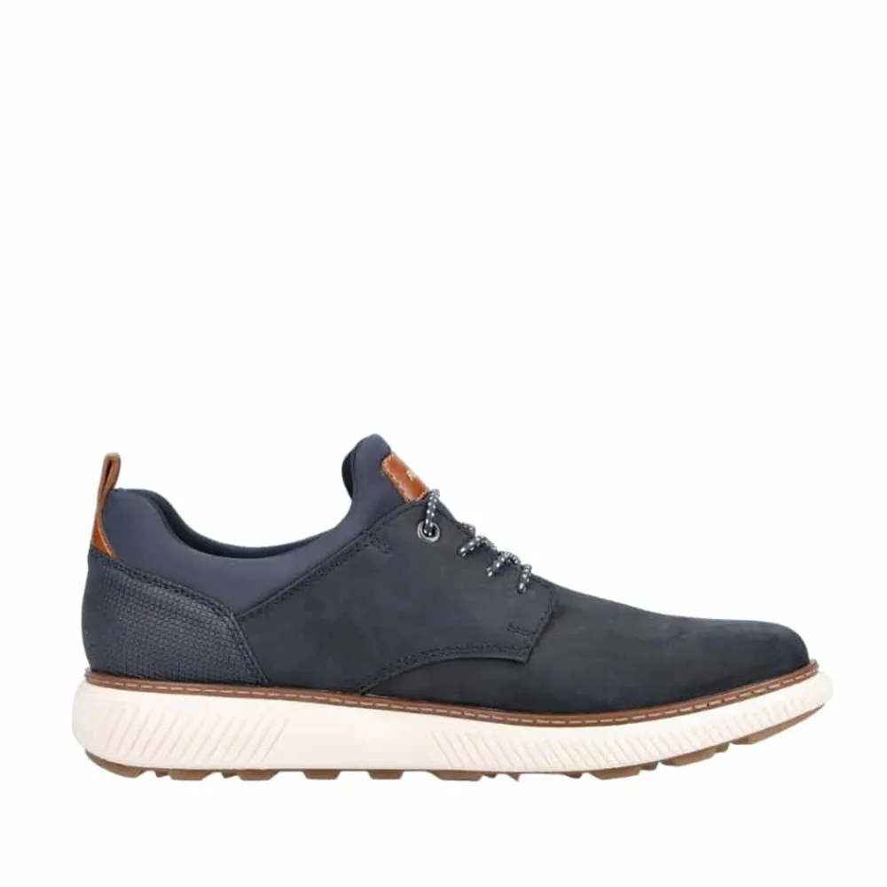 Rieker sneakers i blå til herre. Disse stilfulde ruskindssko er den perfekte følgesvend til enhver lejlighed. Den elastiske snørebåndsmekanisme gør det hurtigt og nemt at tage dem af og på, mens den lette sål sikrer et suverænt greb hele dagen. Med en polstret og udtagelig indersål får du uovertruffen komfort og funktionalitet. Den ekstra bredde (H) giver masser af plads til forfoden, hvilket gør dem ideelle for alle. Disse herre-sneakers er både lette og fleksible, med en stødabsorberende sål, der gør hvert skridt til en fornøjelse. Gør Riekers sneakers til dine nye favoritter og oplev komfort og stil i ét!