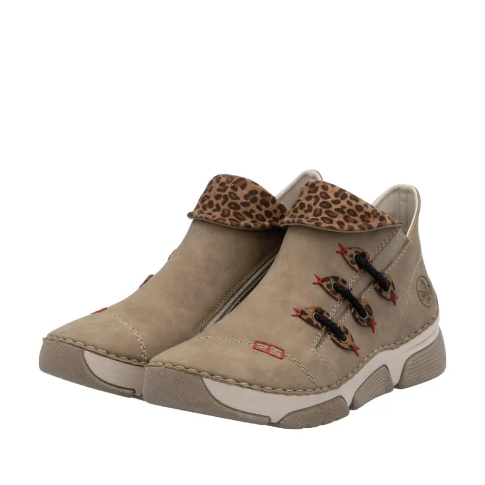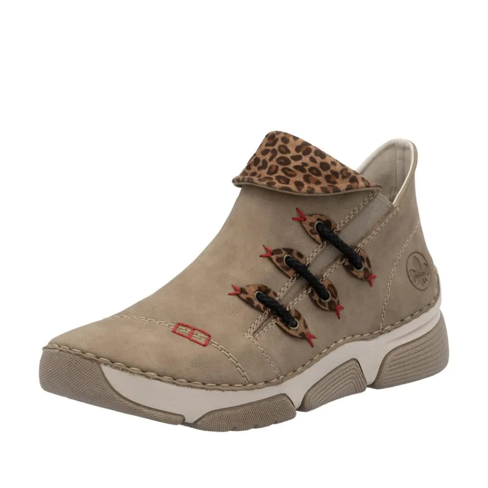 Rieker støvle til dame i beige. Denne støvle fra Rieker er et ideelt valg til hverdagen. Lynlåsen på indersiden og elastikken på ydersiden gør det nemt at tage støvlen af og på. Indvendigt møder du en let foring og en blød sål, som sikrer god komfort hele dagen. Med Rieker Antistress er støvlen både let og fleksibel, og den mønstrede ydersål giver øget stødabsorbering og skridsikkerhed
