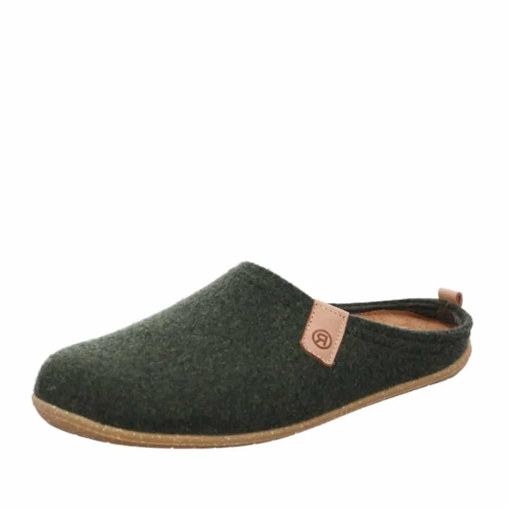 Rohde Greenys N°35 hjemmesko i grøn til herre. Rohde Greenys herre hjemmesko i grøn er det ideelle valg for dig, der ønsker at kombinere komfort og bæredygtighed. Med en delvist genanvendt gummisål og en superkomfortabel læderudskiftelig indersål bliver hverdagens skridt en fornøjelse. Det bæredygtige filt, som består af 50% genanvendt uld, sikrer en lang levetid, mens den lette og lydløse konstruktion med skridsikkerhed gør denne hjemmesko til en pålidelig følgesvend derhjemme.