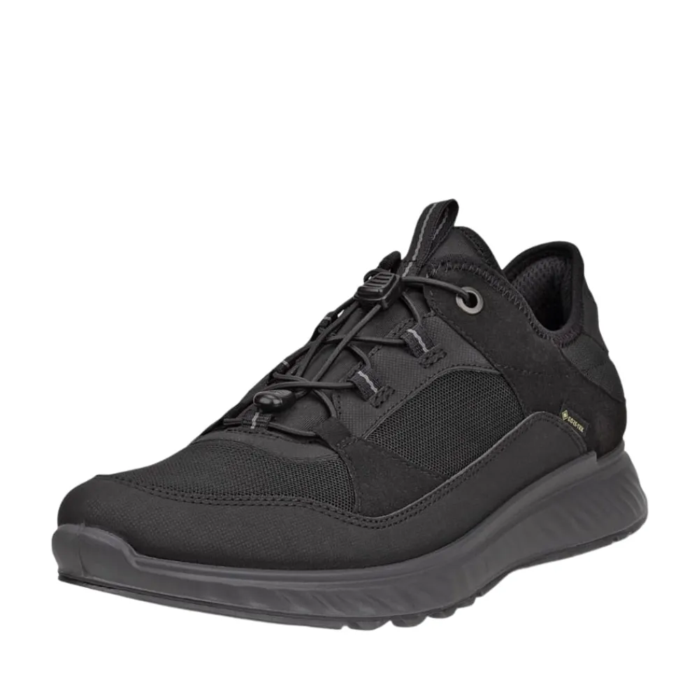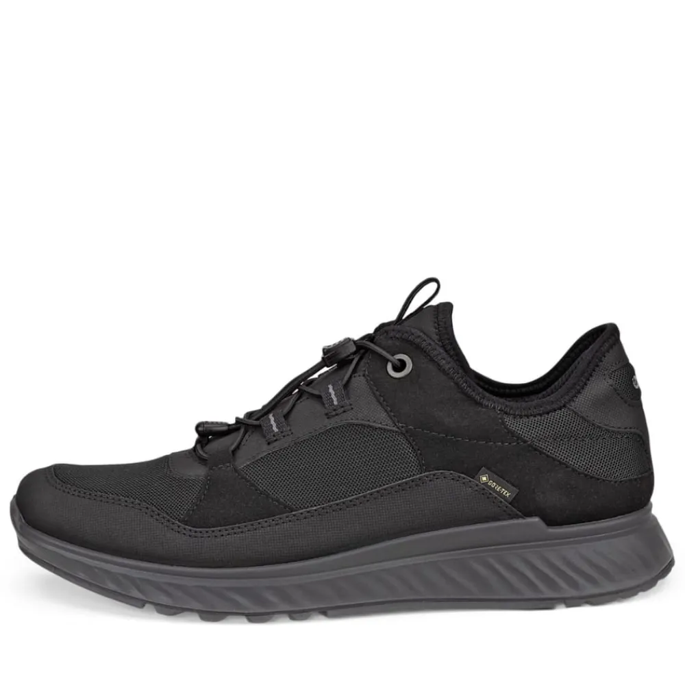Ecco Exostride M sneakers til herre i sort. Mød ECCO EXOSTRIDE: En vandtæt herresko med lav ankel, der er let og åndbar. Takket være GORE-TEX teknologi er den vandtæt og åndbar i al slags vejr. Skoen er bygget på en anatomisk læst for ekstra støtte og stabilitet. Den bløde mellemsål med SHOCK THRU stødpunkt giver optimal stødabsorbering, og den slidstærke gummiydersål sikrer godt fodfæste i alle terræner. En sko, der leverer stil, komfort og holdbarhed til dine eventyr.