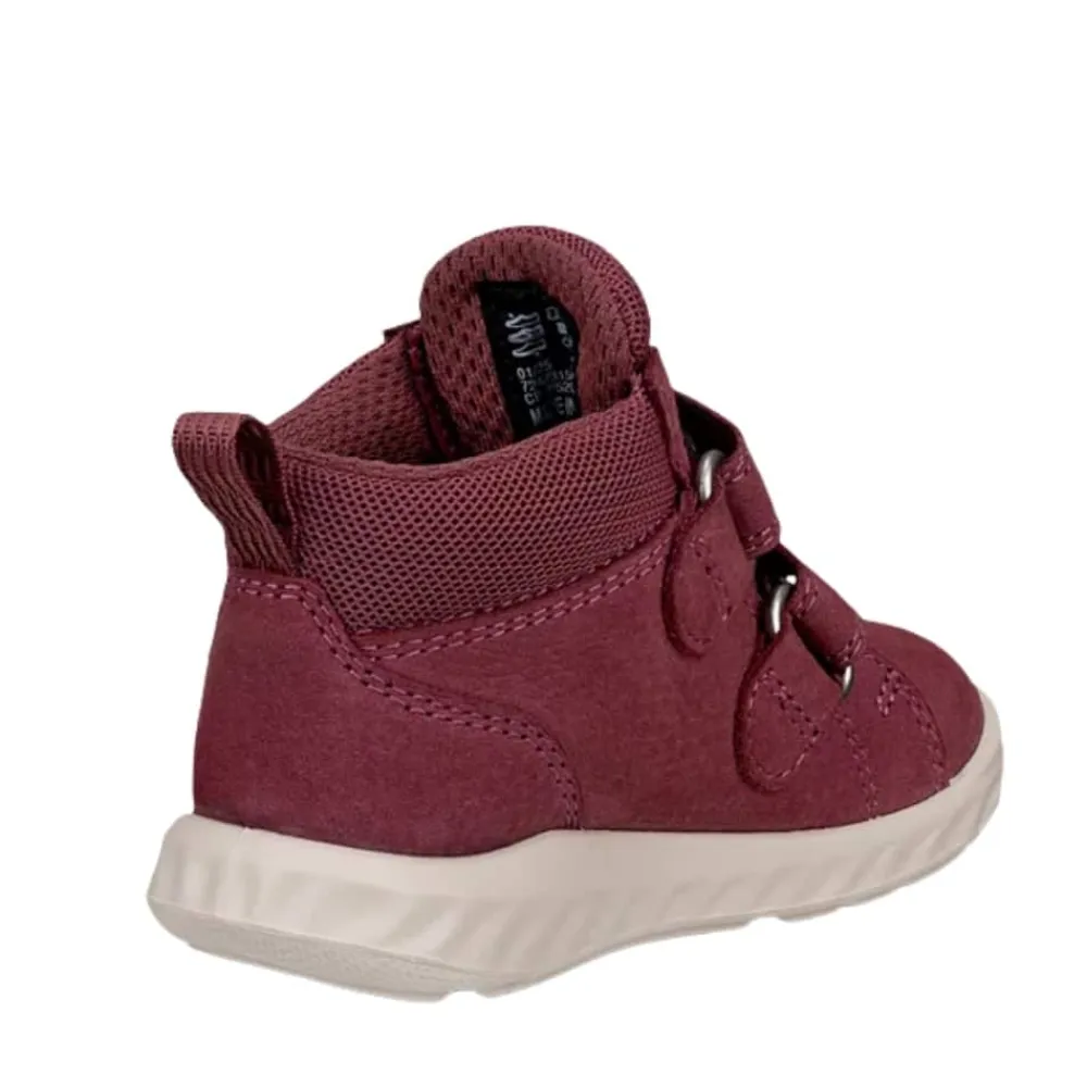 Ecco SP.1 Lite Infant støvle til børn i pink. Denne klassiske børnestøvle kombinerer stil og funktion perfekt. Den er fremstillet i nubucklæder og har to praktiske velcroremme, som gør den let at få af og på. Indvendigt findes en blød, udtagelig indersål, og Eccos vandtætte membran beskytter mod våde fødder. Ecco Fluidform™ sikrer god støtte og høj komfort hele dagen, mens ydersålen med Shock Point teknologi giver effektiv stødabsorbering.