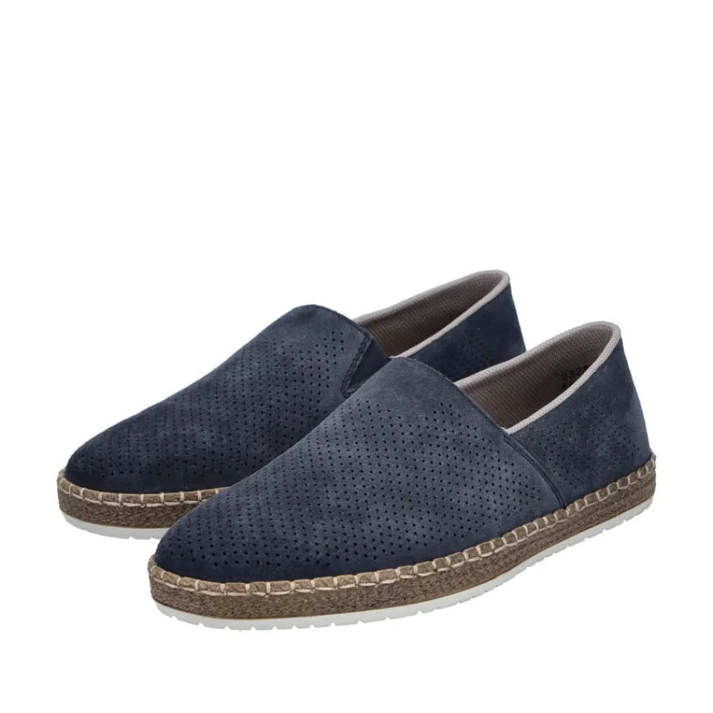 Rieker hyttesko til herre i blå. Oplev enestående komfort med disse Rieker-hytte til herrer i en elegant grå nuance. Fremstillet i slidstærkt ruskind og med en fleksibel konstruktion, der tilpasser sig dine fødder. Åbningen gør det nemt at tage dem på, mens den stødabsorberende PU-sål og den bløde læder-dæksål sørger for komfort dagen lang. Med komfortvidde G ½ får dine fødder ekstra bevægelsesfrihed med ekstra plads i forfoden.