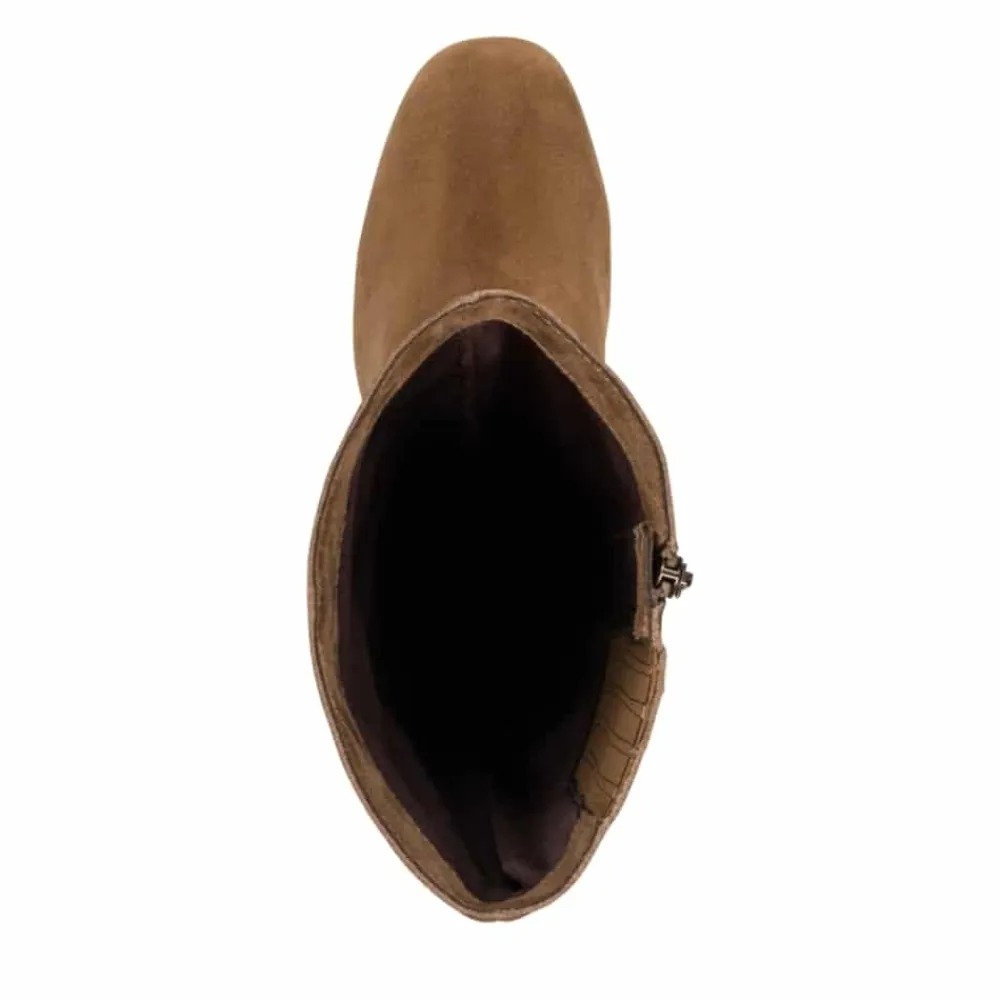 Tamaris lang støvle til dame i brun. Klassisk brun støvle med langt skaft i blødt ruskind, der kombinerer tidløs enkelthed med et moderne look. Lynlåsen på indersiden og elastikken giver en fleksibel pasform og gør modellen nem at tage af og på. Indvendigt sørger den bløde indersål med Touch It teknologi for, at skoen former sig efter foden og giver optimal komfort. Den cirka 6 cm høje blokhæl er udstyret med Anti-Slide og Anti-Shock, som giver øget skridsikkerhed og en behagelig gang.