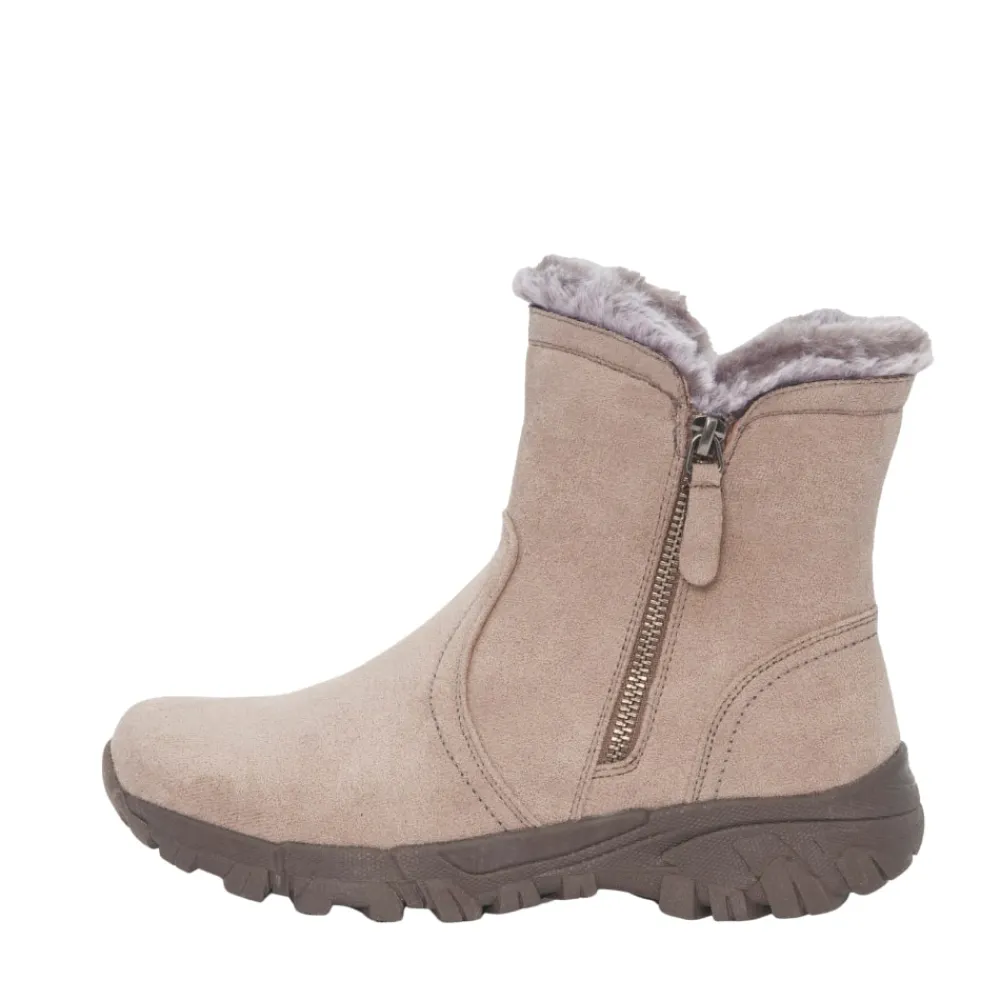 Duffy Ferla Tre støvle til dame i beige. Smart vinterstøvle i en smuk beige farve med stilfulde detaljer, der giver et moderne udtryk. Støvlen er udstyret med en funktionel lynlås, som gør den nem at komme i og af i hverdagen. Indvendigt mødes du af en blød indersål og en varm foring, der sikrer god komfort og holder fødderne lune hele dagen. Den chunky ydersål giver øget støtte, mens mønsteret under sålen bidrager til øget skridsikkerhed.