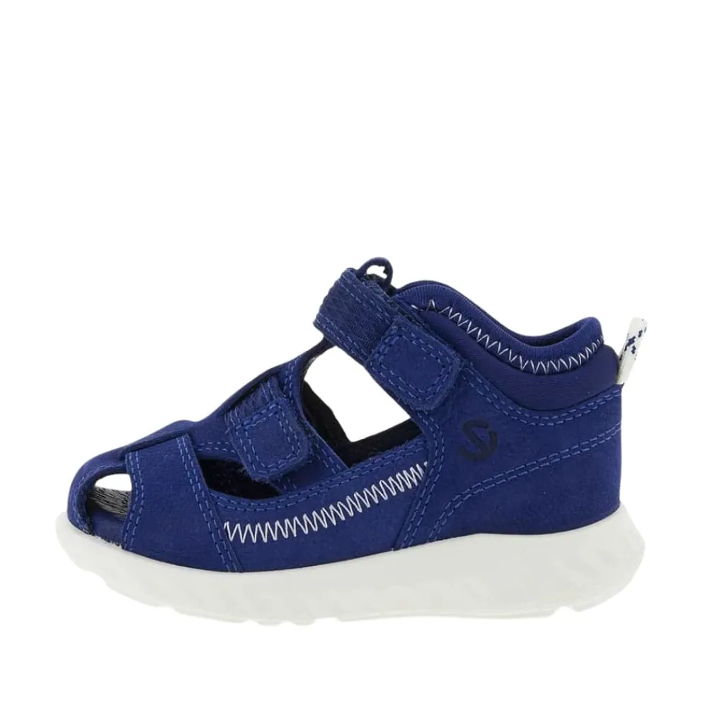 Ecco sandal i blå til børn 72514160442. Dejlig let og funktionel sandal til børn i den fineste blå farve. Modellen har to velcro-lukninger, så man nemt og hurtigt kan komme i/af den samt justere den til foden. Sandalen har lukket tå foran, så der er god beskyttelse til tæerne. Modellen har en stødabsorberende og let bund, der giver god komfort.