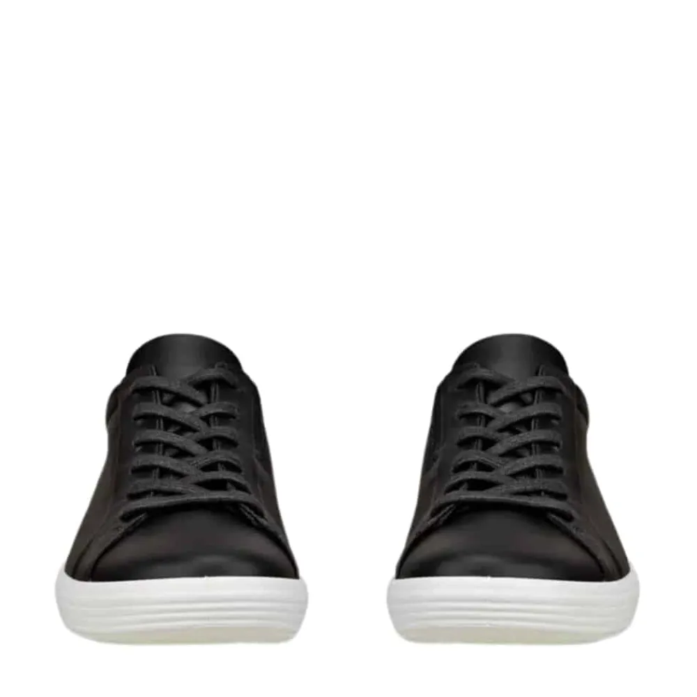 Ecco Soft 7 Easy Slip Lace sneakers til dame i sort. Disse moderne sneakers i klassisk sort med en elegant lyserød detalje på hælen balancerer perfekt mellem stil og komfort. Overdelen i glatskind giver et tidløst og eksklusivt udtryk, mens slip-in funktionen med fast hælkap gør skoen nem at tage på og af. Snørebåndene gør det muligt at justere pasformen, så den sidder helt rigtigt. Med den ekstra brede pasform får dine fødder masser af plads og komfort hele dagen. Indersiden er udstyret med en blød Ecco Fluidform™ indersål af skind, der tilpasser sig fodens naturlige form for optimal støtte. For endnu større fleksibilitet kan indersålen nemt tages ud efter behov.