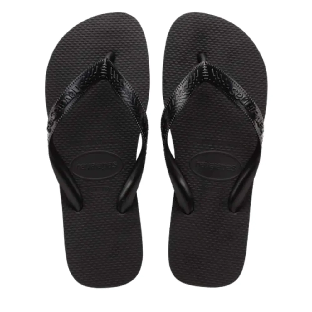 Havaianas Top klipklapper til dame i sort. Klassiske og stilrene klipklapper med en blød gummisål, der giver en fleksibel og behagelig fornemmelse ved hvert skridt. Den slidstærke rem med tonet logo tilfører et moderne og elegant udtryk, mens den teksturerede fodseng sikrer høj komfort hele dagen. En holdbar og vandtæt sandal, perfekt til både strand, pool og afslappede sommerdage.