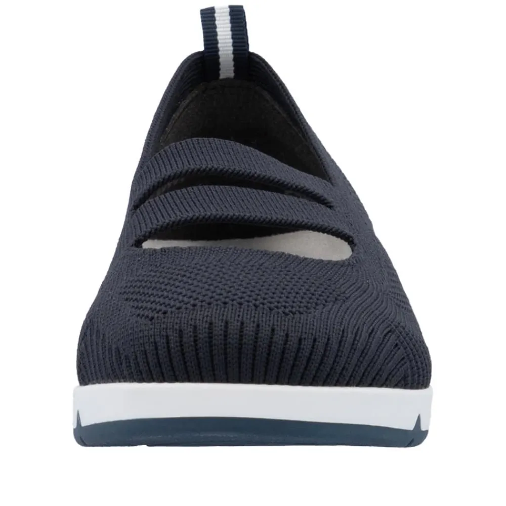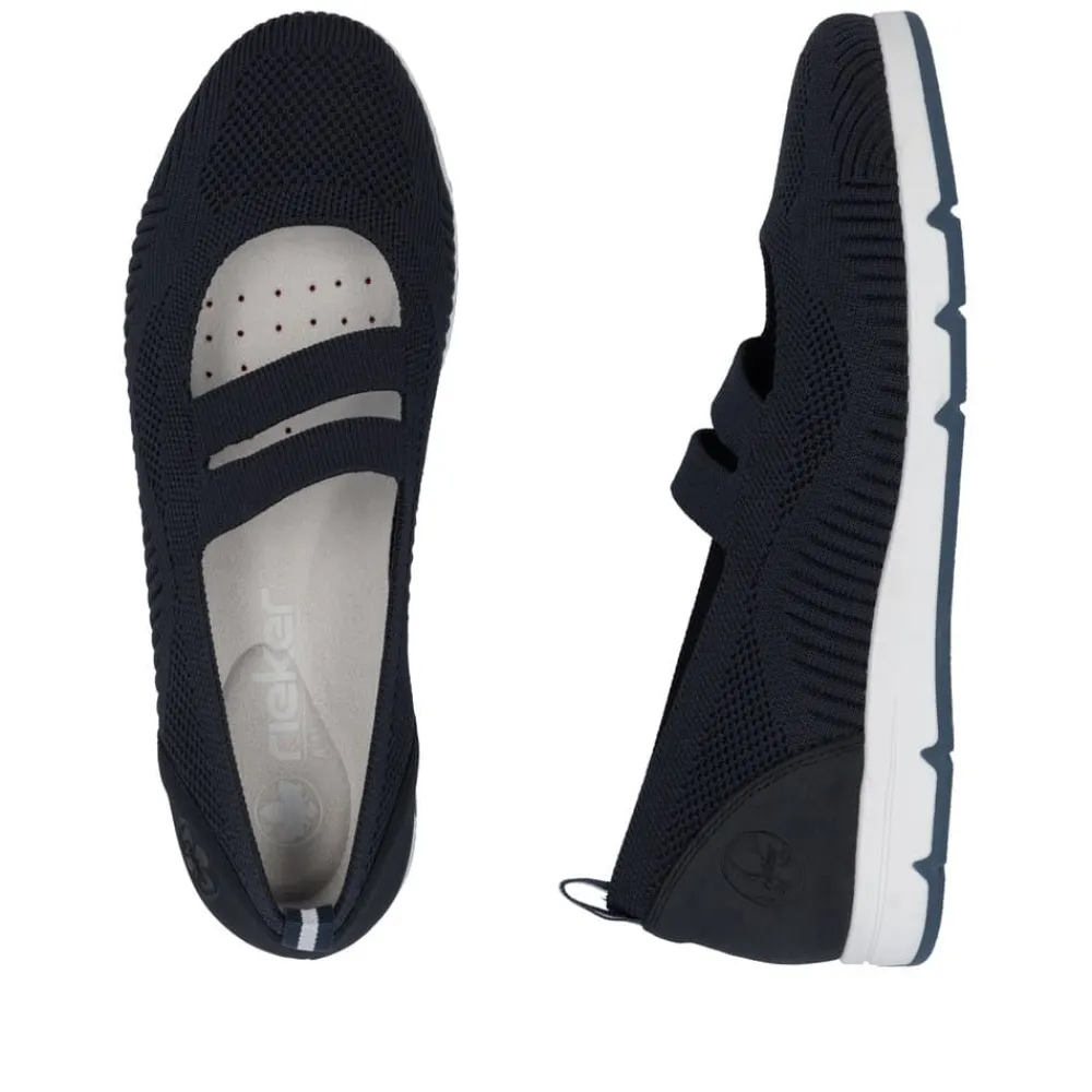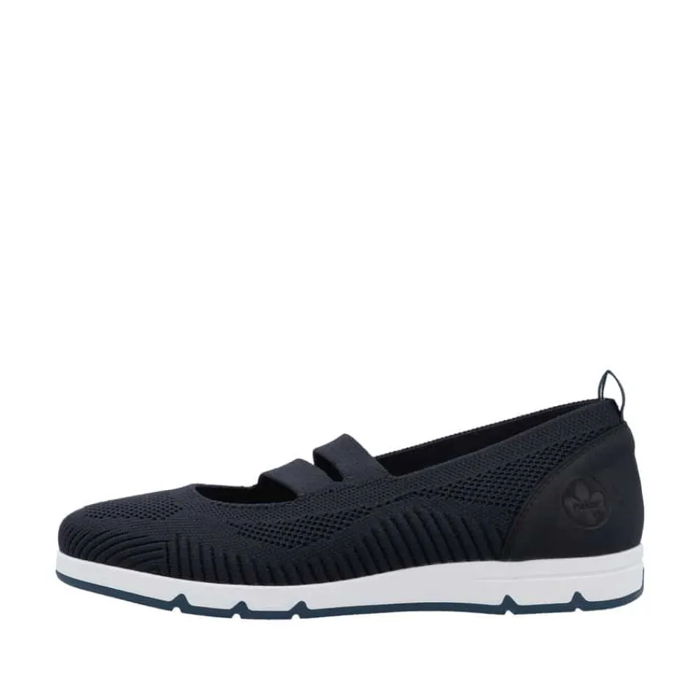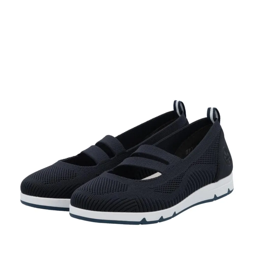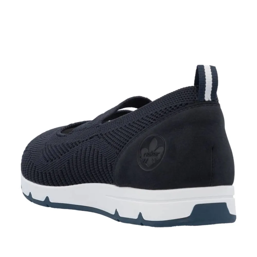 Rieker sko til dame i blå. Få den ultimative komfort med disse Rieker sko i blå til kvinder. Den bløde og fleksible TR-gummisål kombineret med elastikken over vristen sikrer en perfekt pasform, mens de udtagelige Rieker soft såler giver ekstra støtte. En let og åndbar sko, der er utrolig nem at tage på og af – ideel til både hverdag og afslapning.