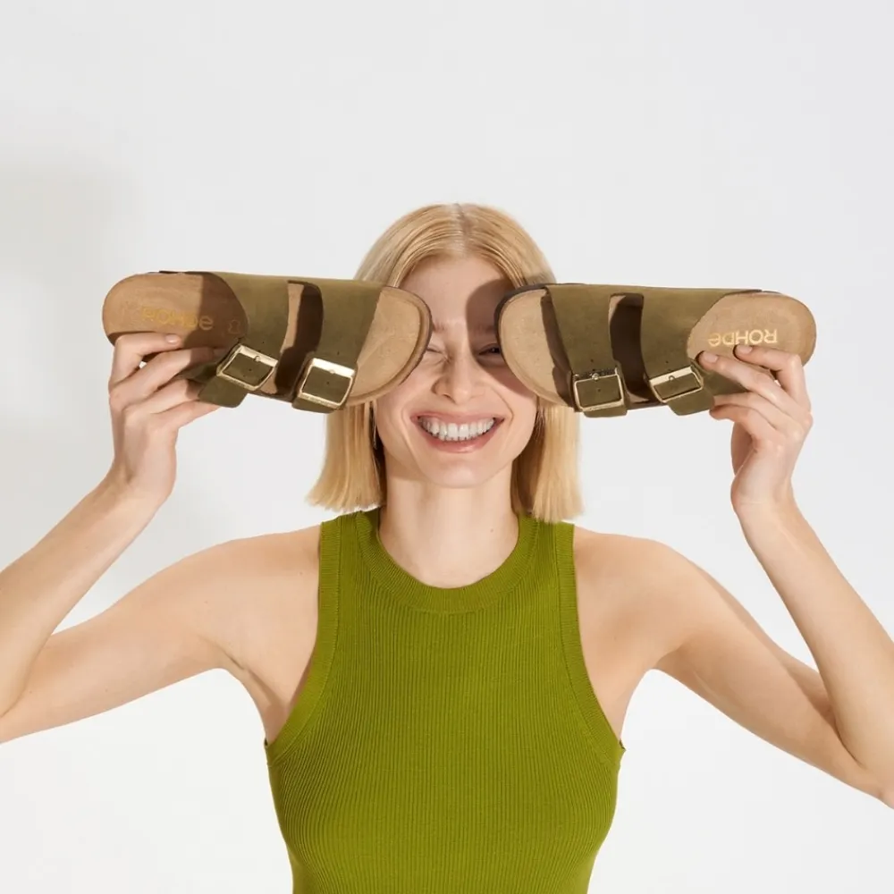 Rohde Sunnys N°12 sandal til dame i khaki. Denne klassiske sandal i en moderne mørkegrøn farve giver dit outfit et stilfuldt løft. Overdelen er lavet af 100 % læder og har to justerbare spænder, som sikrer en god og tilpasset pasform. Indersålen i blødt ruskind og den rummelige bredde G giver dig komfort hele dagen. Ydersålen er solid og mønstret for ekstra stabilitet og skridsikkerhed.