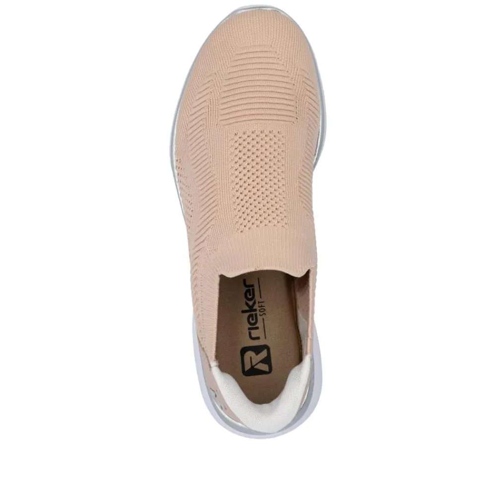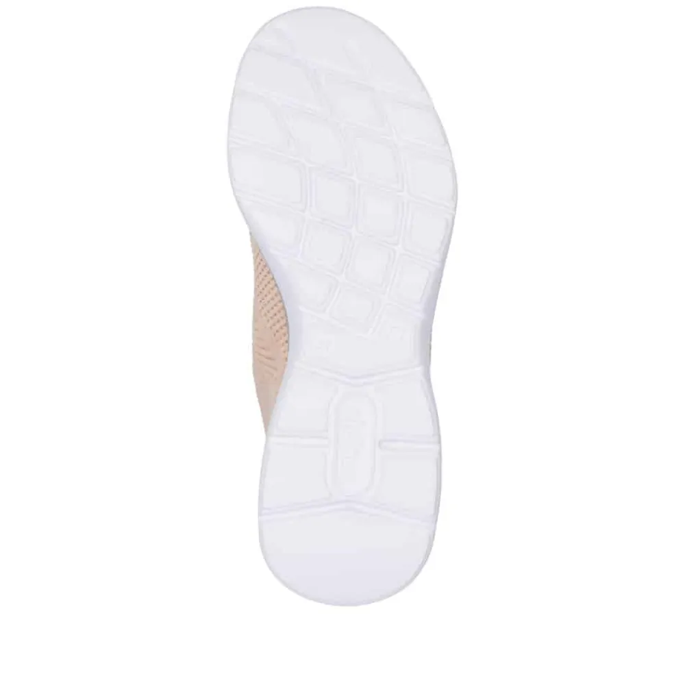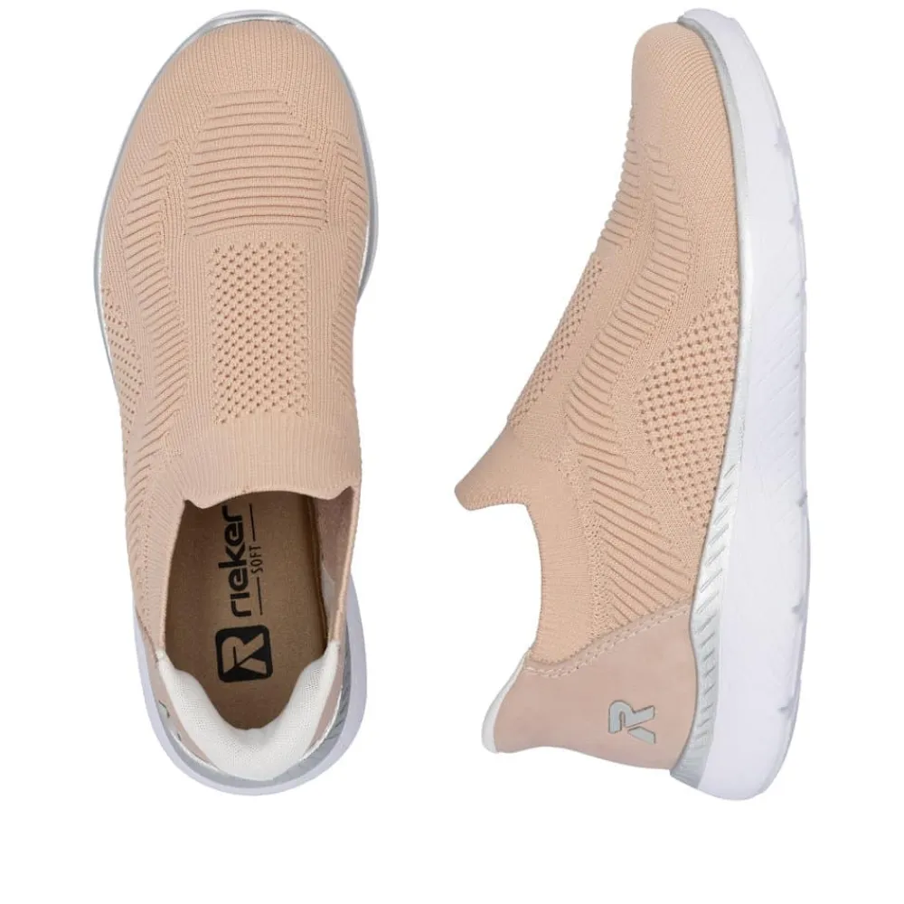 Rieker Ready 2 Go sko til dame i lyserød. Denne sko fra Rieker er designet med den praktiske Hands Free Ready 2 Go-teknologi, der gør det nemt at tage skoene på uden hænder, takket være den faste hælkappe. Med Rieker Antistress-teknologien får du optimal fleksibilitet og stødabsorbering for maksimal komfort ved hvert skridt. Den elastiske åbning og de bløde Memosoft-indlæg giver en behagelig og fleksibel pasform hele dagen. Et ideelt valg for dig, der sætter pris på både funktionalitet og komfort.