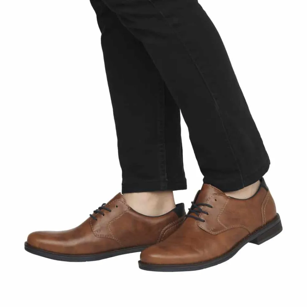 Rieker sko i cognac/brun til herre. Ekstra plads til dine fødder! Disse dejlige nougatbrune snøresko fra Rieker vil du næsten ikke kunne undvære. Snørebåndene sikrer samtidig, at skoen altid sidder perfekt på dine fødder. Med den holdbare sål kan du tage hvert skridt med fuld tillid. Den bløde og åndbare læderindlægssål giver både optimal komfort og intelligent funktionalitet. Modellen er skabt med en komfortabel bredde i størrelse G 1/2. Så er der intet, der kan holde dig tilbage fra lange gåture!
