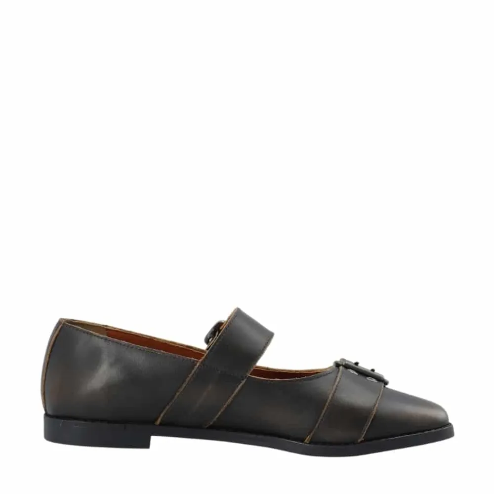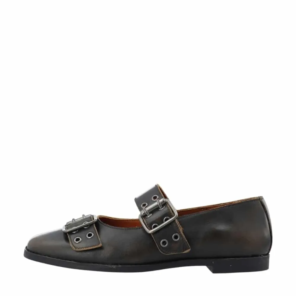 Cashott Casdiana ballerinasko til dame i mørkebrun. Denne moderne ballerinasko kombinerer komfort og stil på fineste vis. Skoen er lavet i blødt læder og har to flotte spænde detaljer, der tilføjer et elegant udtryk. Den runde snude og lille hæl på 1,5 cm giver et klassisk look, mens den bløde indersål sikrer, at du går behageligt hele dagen. Med en gummisål under fødderne får du også et godt og sikkert fodfæste.