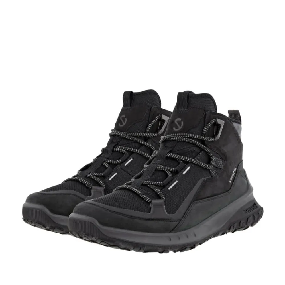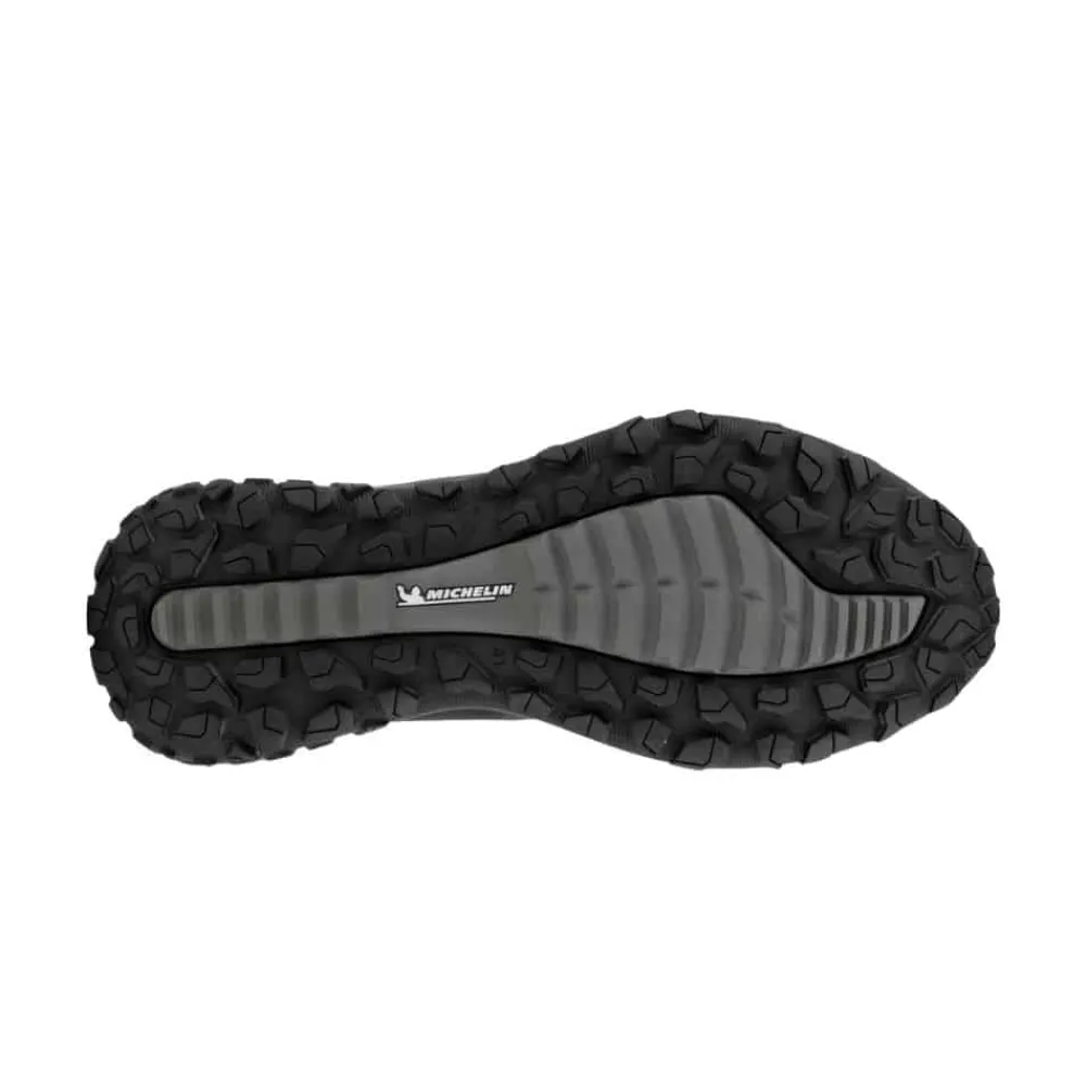 Ecco støvle til herre i sort. Fed og praktisk støvle med justerbare snørebånd foran. Støvlen har en super god og solid sål med et godt mønster, der øger skridsikkerheden. Støvlen har derudover Michelin såler, der giver et par super stærke letvægtsstøvler i højeste klasse perfekt til udendørsaktiviteter, der kan holde til vind og vejr. I den forbindelse er støvlen også 100% vandtæt, da støvlen er udstyret med Ecco’s velkendte Waterproof membran . Sidst men ikke mindst har modellen udtagelige såler, der gør du nemt og hurtigt kan skifte sålen ud efter behov.