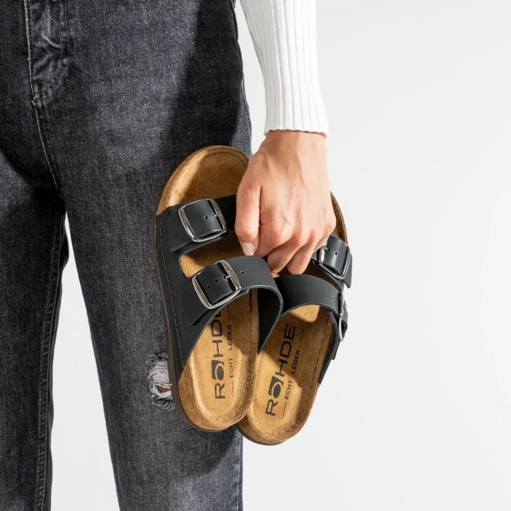 Rohde Easys N°42 sandal til dame i sort. Dyk ned i komforten med denne klassiske og lette sandal fra Rohde. Med to justerbare spænder kan du skræddersy pasformen til din fod perfekt. Denne model er omhyggeligt fremstillet af kvalitetsskind både udvendigt og indvendigt, hvilket tilføjer en ekstra dimension af luksus og holdbarhed. Den indbyggede Memory stødabsorberende sål sikrer, at hvert skridt føles blødt og behageligt, hvilket gør den ideel til lange gåture og aktiviteter hele dagen. Memory-fodsengen har et let Memory-gelindlæg, der støtter den naturlige bevægelse, fordeler trykket og giver ekstra komfort og støtte til foden.