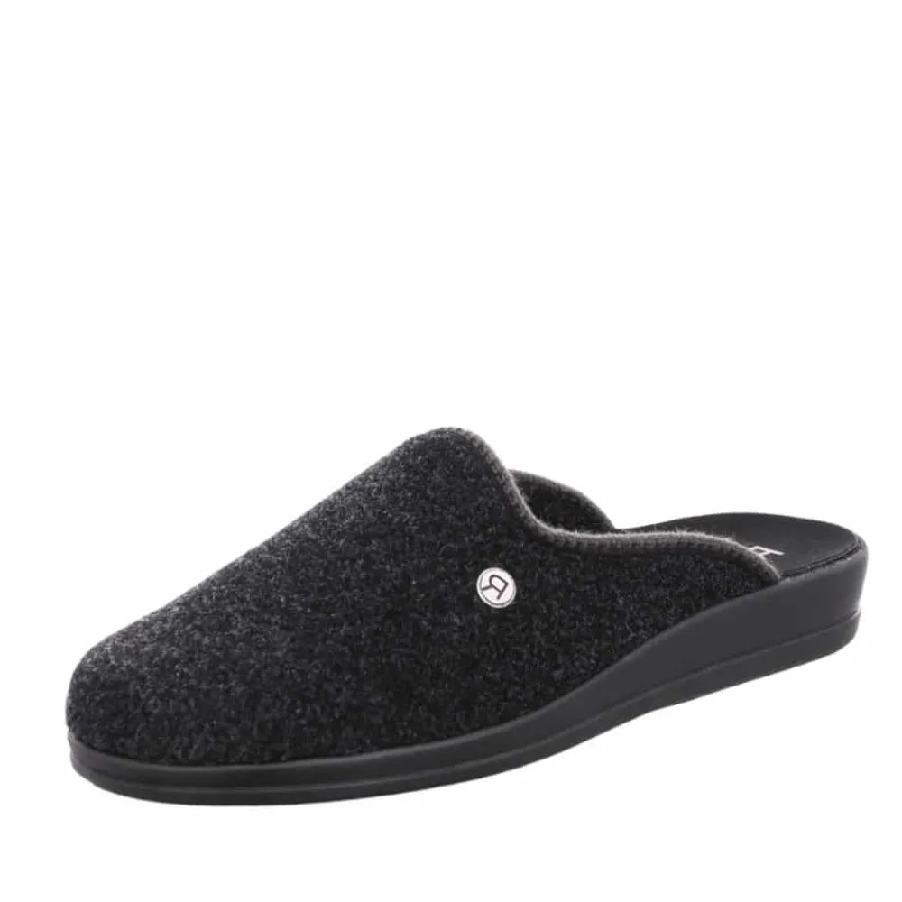 Rohde hjemmesko til herre i sort. Perfekt hjemmesko til herre i sort med blød overdel i filt, så dine fødder forbliver lune dagen lang. Hjemmeskoen er let at komme i og af samt udstyret med en blød indersål mens ydersålen er let og fleksibel, for optimal komfort.