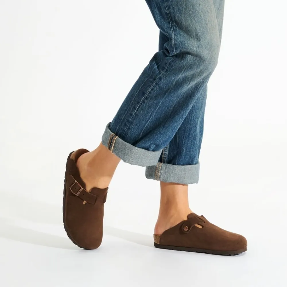 Rohde Sunnys N°15 slippers til dame i brun. Moderne slippers i en smuk mørkebrun farve med en justerbar spænde på siden, der giver et stilfuldt udtryk og en god pasform. Overdelen er fremstillet i blødt ruskind, mens den åndbare indersål i ruskind sørger for høj komfort hele dagen. Modellen er designet i bredde G, som giver ekstra rummelighed. Ydersålen er solid og fleksibel med en kork-latex kerne, der giver god støtte og komfort.