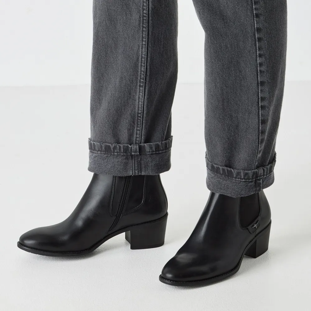 Tamaris støvle til dame i sort. Klassisk sort støvle med skindoverdel og et tidløst udtryk. Modellen har elastik på ydersiden og en lynlås på indersiden, så den er nem at tage af og på. Indvendigt finder du en blød sål, der sikrer komfort hele dagen. Hælen på 4,5 cm giver et elegant løft, mens ydersålen med Antislide giver bedre skridsikkerhed ved hvert skridt.