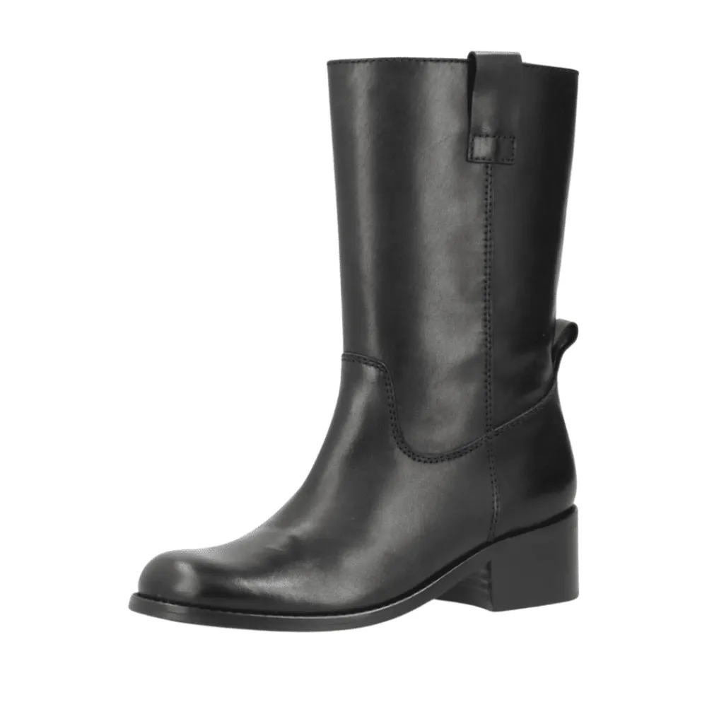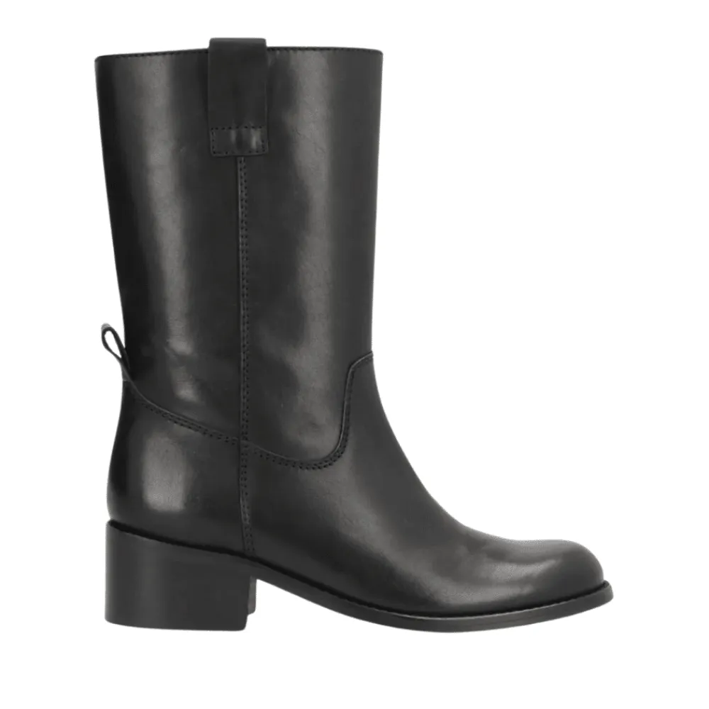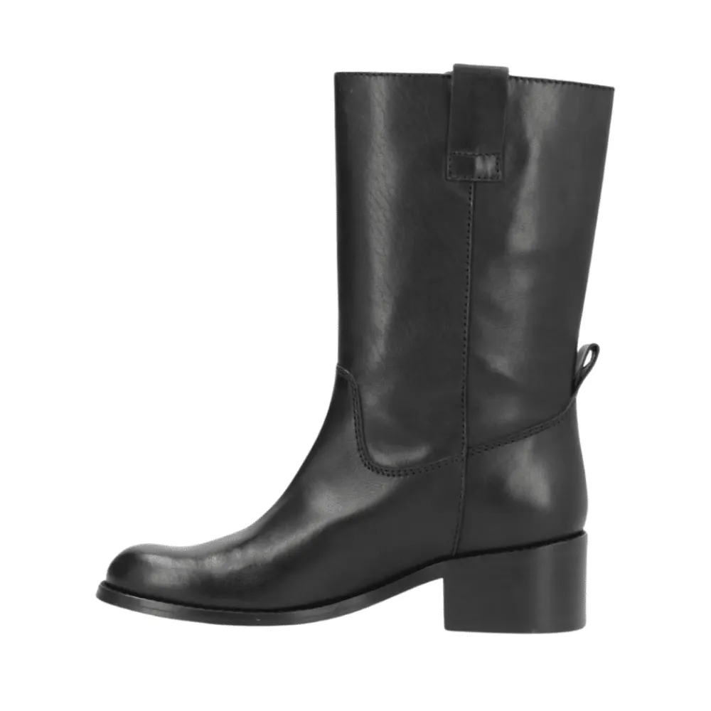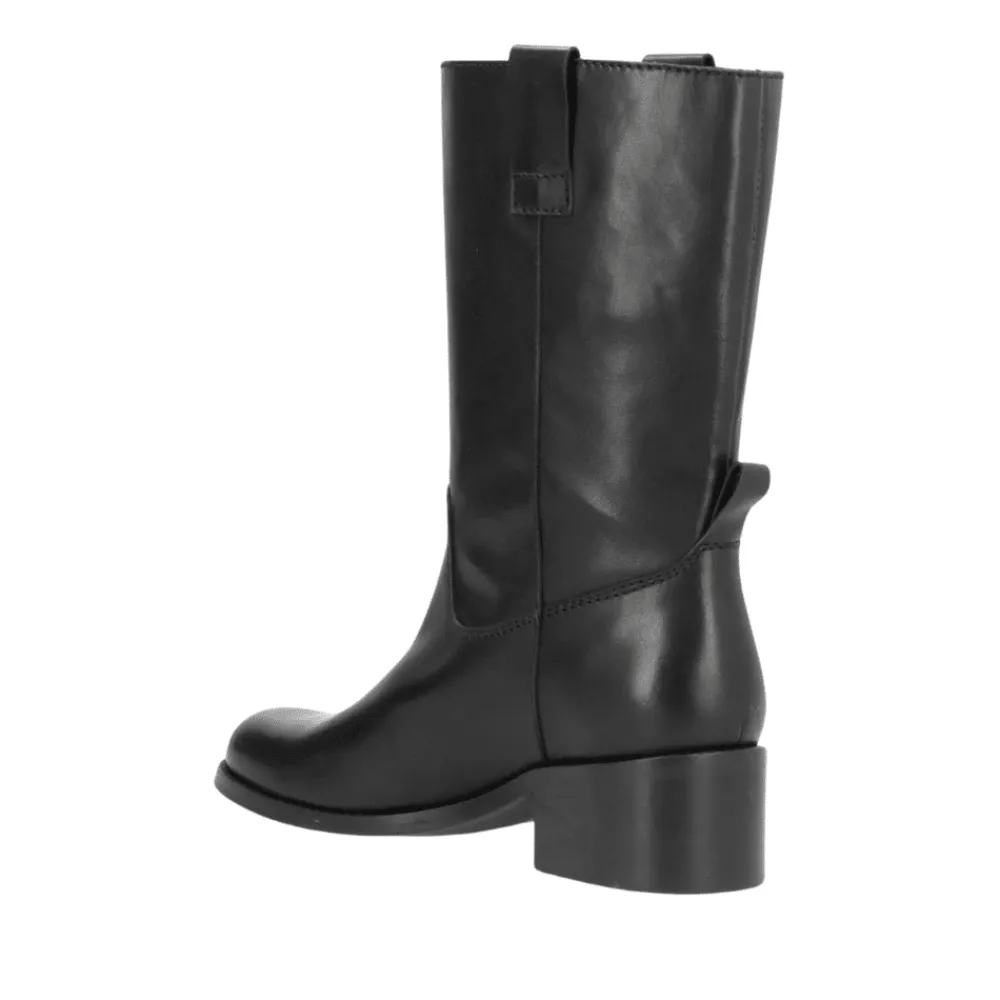 Phenumb Copenhagen Martina støvle i sort. Støvlen er fremstillet af førsteklasses skind, der ikke kun tilføjer en sofistikeret dimension til dit outfit, men også garanterer langvarig holdbarhed. Den dybe sorte farve gør denne støvle alsidig og let at matche med forskellige outfits, uanset om det er jeans, nederdele eller kjoler. Med en hælhøjde på 5 cm tilbyder støvlen den perfekte balance mellem komfort og elegance. Du får den ønskede højde uden at ofre komforten.