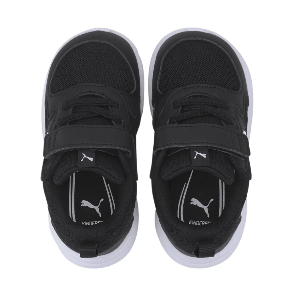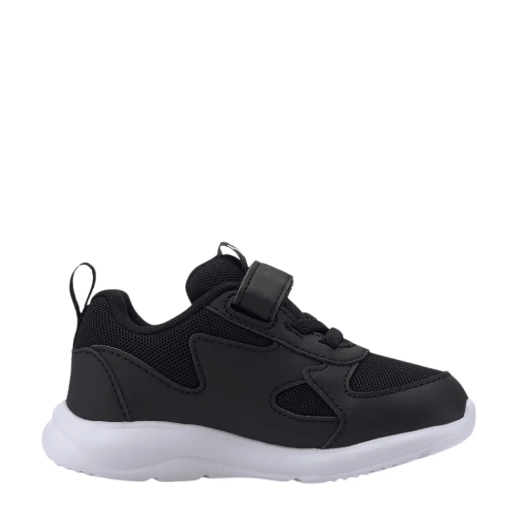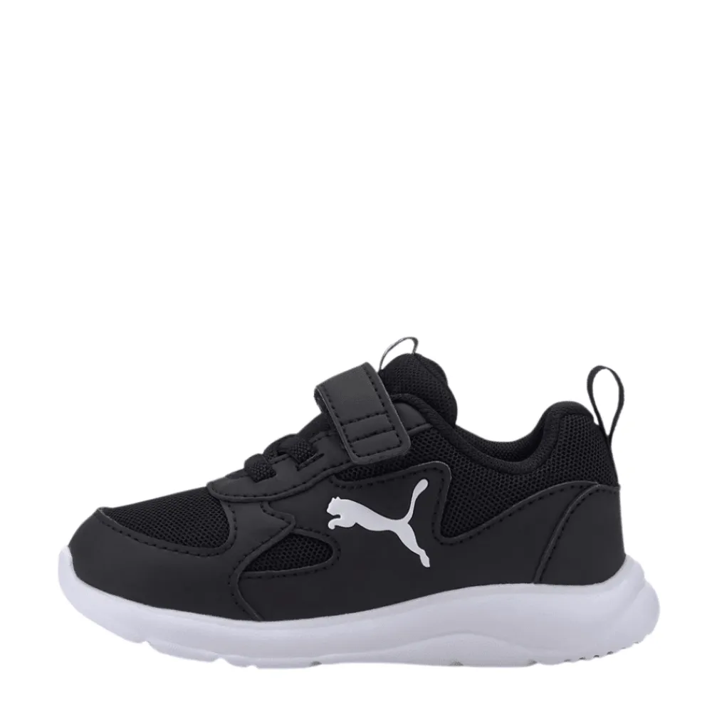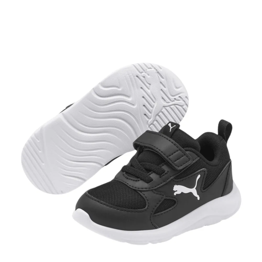 Puma Fun Racer AC Inf sneakers i sort til børn. Giv dine børn et trendy og komfortabelt sko valg med Puma Fun Racer sneakers. Disse sneakers kombinerer stil og funktionalitet med et cool design og en behagelig pasform. Det åndbare materiale gør dem perfekte til daglig leg og aktivitet. Puma-logoet og karakteristiske vinkler tilføjer et strejf af sporty flair. Denne sneakers har både velcrolukning og elastiksnøre, som gør den nem at få på. Modellen har udtagelige såler.