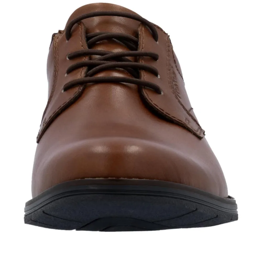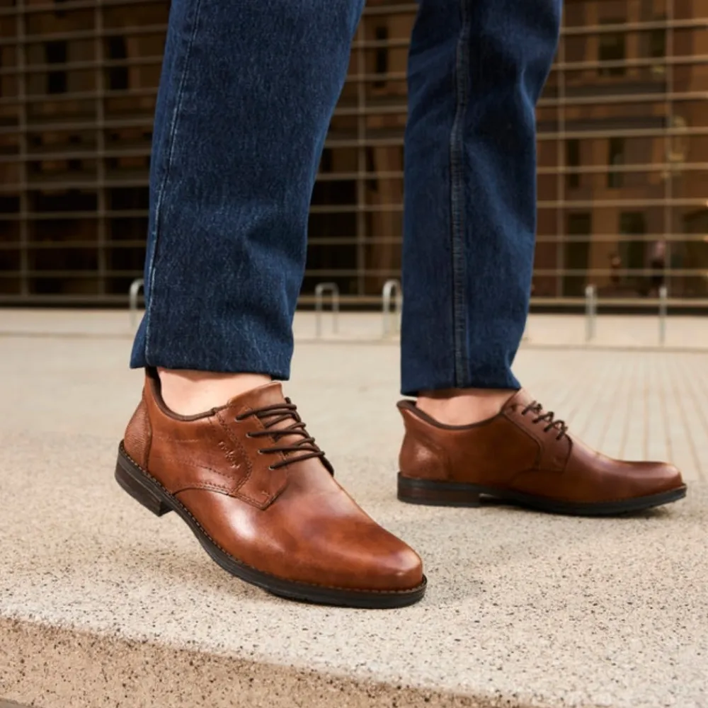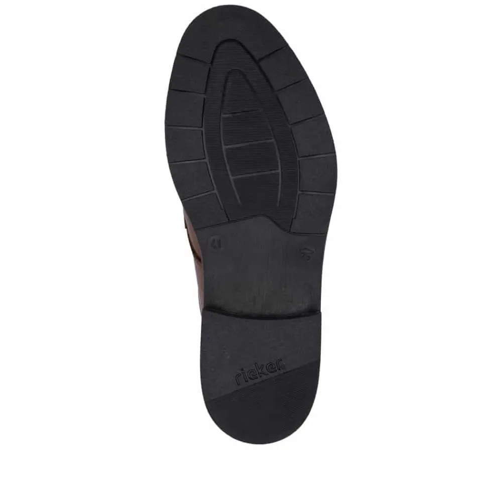Rieker Ready 2 Go sko til herre i brun. Bare træd i dem og kom afsted med stil og komfort! Med den praktiske Ready2GO-funktion og en fast hælkappe kan du nemt glide i skoene uden besvær. Disse brune Rieker slip-ons til herrer i glat læder er den perfekte kombination af elegance og funktionalitet. Den robuste og fleksible konstruktion gør dem til en pålidelig ledsager i hverdagen, mens elastikken sikrer en nem og behagelig pasform. De dekorative syninger giver skoen et moderne og stilrent look. Med en skridsikker TR-sål får du stabilitet ved hvert skridt, og den ekstra bløde læderindersål sørger for maksimal komfort hele dagen. Ideelle til både hverdag og afslappede anledninger – det ultimative valg for den moderne mand!