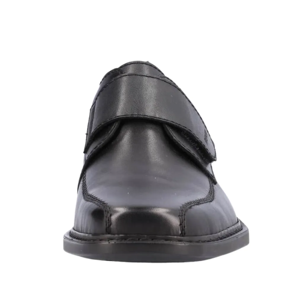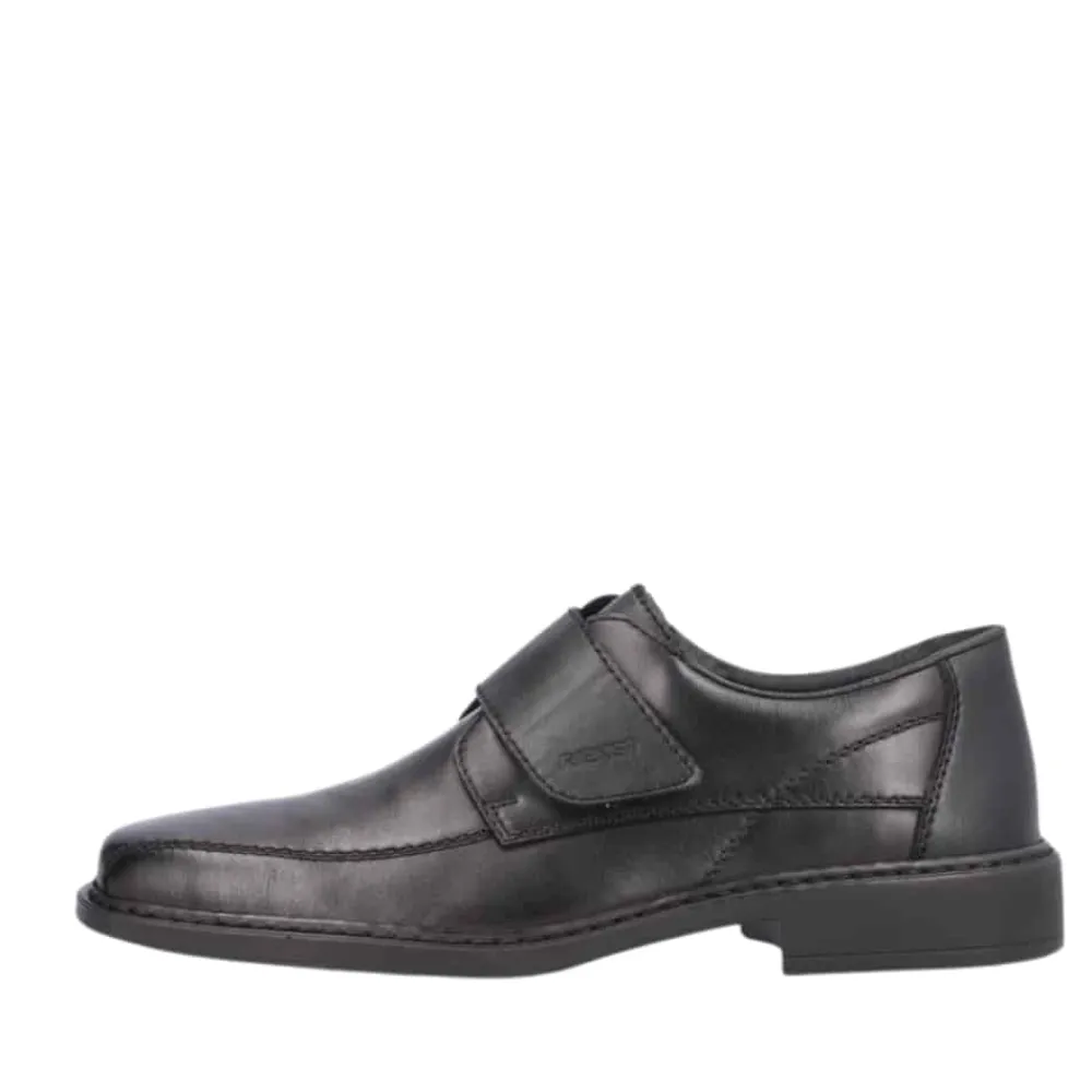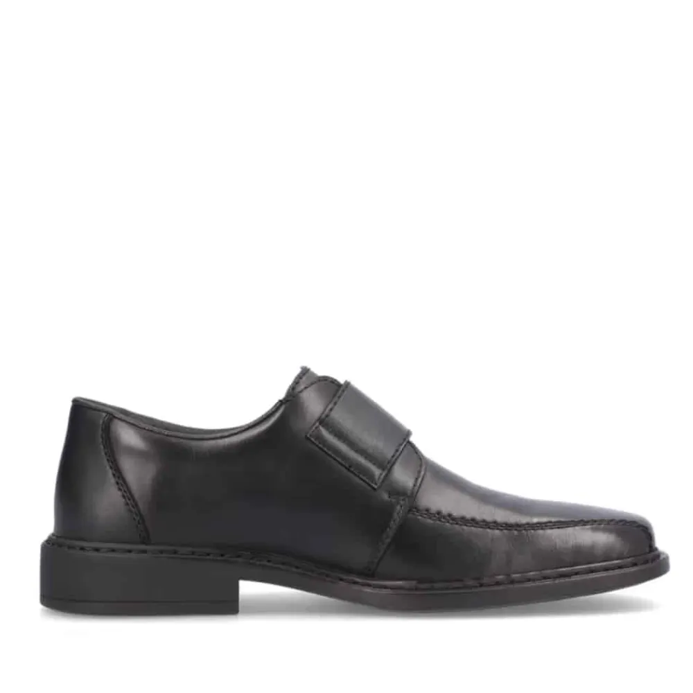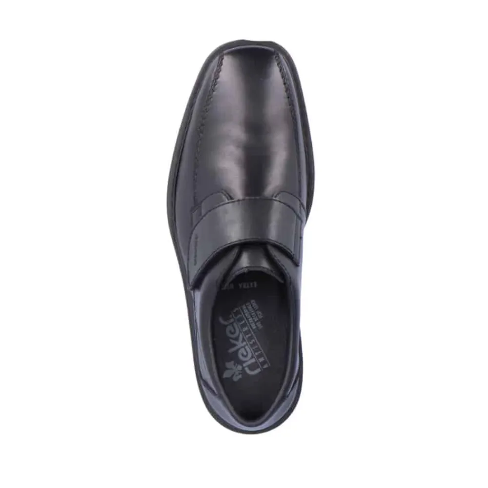 Rieker sko til herre i sort. Disse natte sorte Rieker slip-on sko til mænd lavet af glat læder vil du slet ikke tage af igen. Takket være en praktisk velcrolukning er modellen lynhurtig at tage på. Den støddæmpende og lette sål giver vedvarende velvære – selv på lange dage. Derudover sørger den ekstra bløde indersål for ekstra komfort. Skoen er designet med ekstra bredde i størrelse H. Fodtøjet er foret med åbencellet materiale, der er meget åndbart og effektivt absorberer fugt, hvilket gør det perfekt til varmere temperaturer. Bare glid ned i dem og nyd – med Rieker!