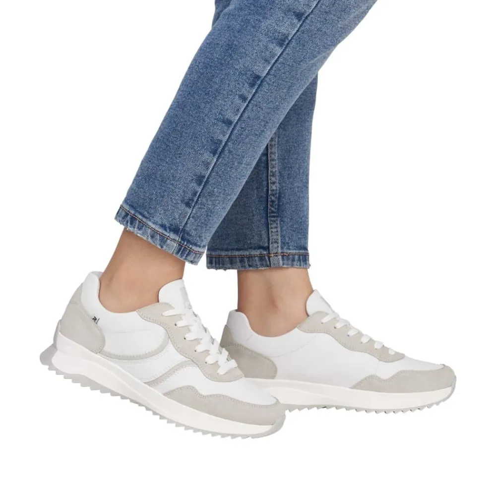 Rieker sneakers til dame i hvid. Disse sneakers er fremstillet med en overdel af højkvalitets glat læder og er skabt til at forene stil og funktionalitet. Den robuste og skridsikre TR-sål sikrer et solidt greb, hvilket gør dem ideelle til daglig brug. Med polstrede, stødabsorberende og udtagelige indlægssåler får du optimal komfort og fleksibilitet ved hvert skridt. Indvendigt er skoene foret med åndbart og let Microvelour-Drysport-materiale, som holder dine fødder friske og behagelige hele dagen. Den klassiske snørelukning giver en god pasform, mens det elegante design gør skoene velegnede til både afslappede og aktive dage.