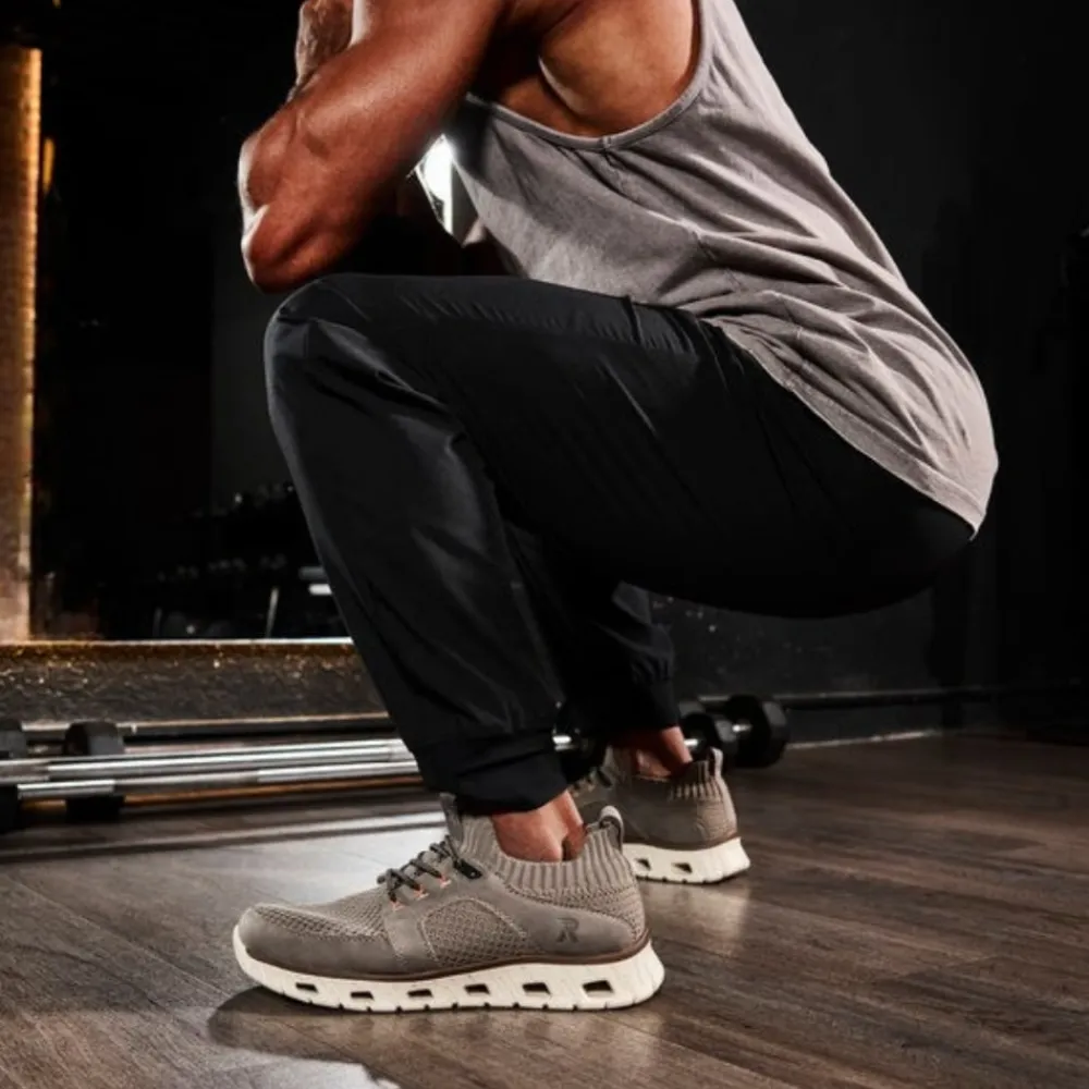 Rieker sneakers til herre i beige/brun er en let og fleksibel sko, der kombinerer komfort og et moderne look. Overdelen er fremstillet i åndbart tekstil, som sikrer en behagelig pasform og giver et stilrent udtryk. Skoen har elastiske snørebånd og en fleksibel åbning, hvilket gør det nemt at tage den af og på uden besvær. Den ultralette EVA-sål giver en naturlig affjedring og gør skoen ideel til både hverdagsbrug og lettere træning. Indersålen er blødt polstret og stødabsorberende, hvilket reducerer belastningen på fødderne. Den kan desuden tages ud og udskiftes med egne såler, hvis det ønskes. Med sin neutrale beige farve er denne sneakers alsidig og nem at kombinere med forskellige outfits. Den er perfekt til en aktiv livsstil og giver komfort hele dagen, uanset om du bruger den til gåture, fitness eller afslappede hverdagsaktiviteter.