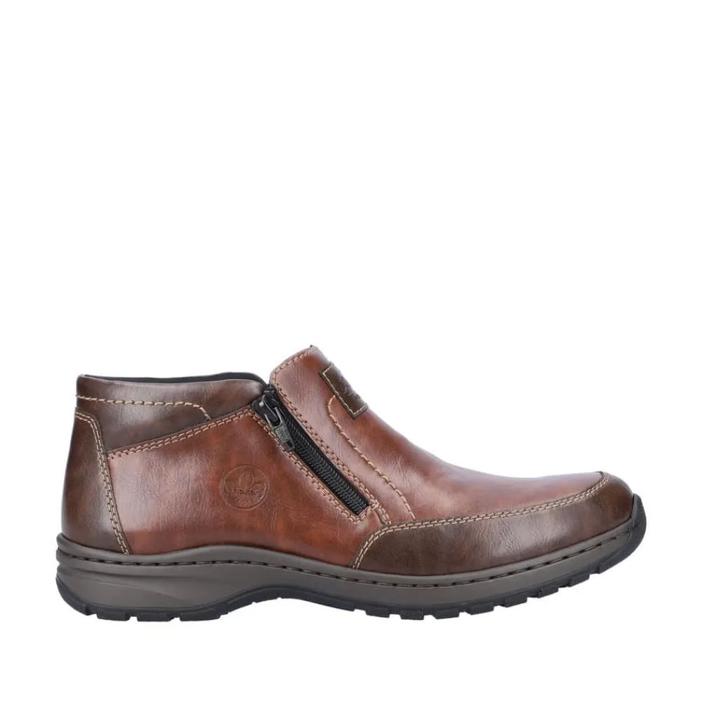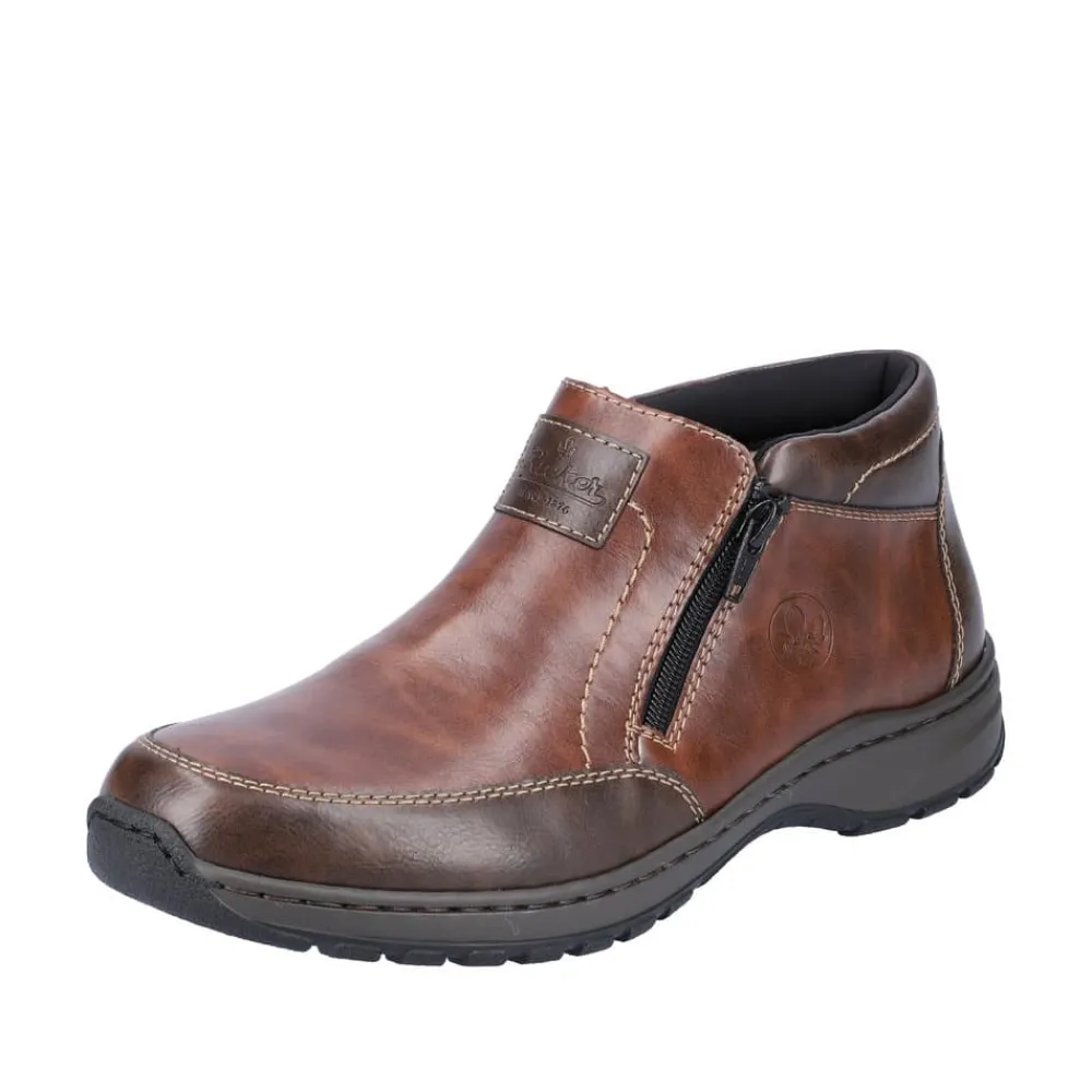Rieker støvle i brun til herre. Nyd denne behagelige, lette og fleksible ankelstøvle med en stødabsorberende sål og ekstra plads i tåområdet for øget komfort. Støvlen har en smidig, autentisk overflade og praktiske lynlåse på begge sider, hvilket gør den nem at tage på og af. Dette er en tidløs herrestøvle fra Rieker, der passer til enhver lejlighed. Støvlen er foret indvendigt.