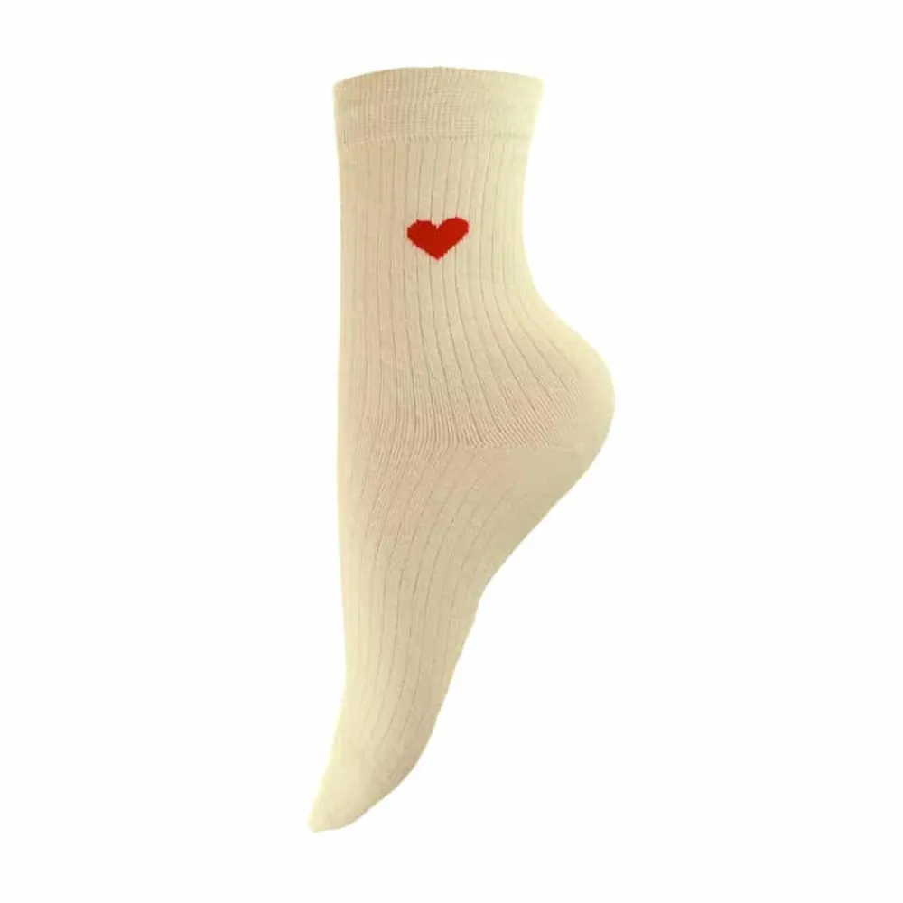 By Stær strømper til dame i hvid. Disse flotte strømper med et hjerte er perfekt til at pifte sommerens sneakers og sandaler op. Det unikke design kombinerer elegance og komfort, mens det fine hjerte giver et ekstra stilfuldt udtryk. Med 80% bomuld er de bløde og åndbare, og 20% polyester sikrer god slidstyrke. Strømpen tåler maskinvask ved 30°C og er et ideelt valg til både hverdagsbrug og festlige lejligheder.