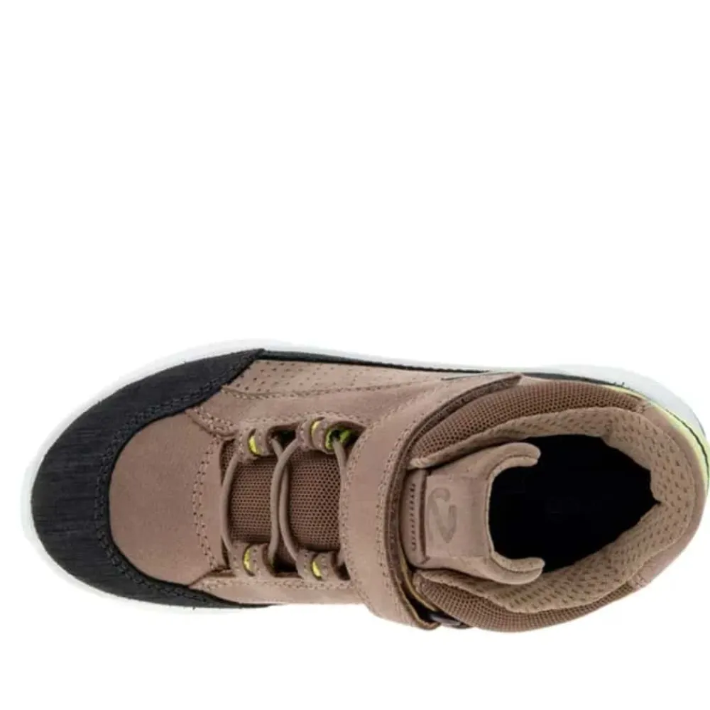 Ecco Exostrike støvle i grå/sort til børn. Dejlig let og flexibel støvle til børn i en flot grå farve kombination. Skoen har velcro lukning, som gør det let for dit barn, selv at komme i/af støvlen. Skoen har Gore-Tex, som gør den 100% vandtæt.