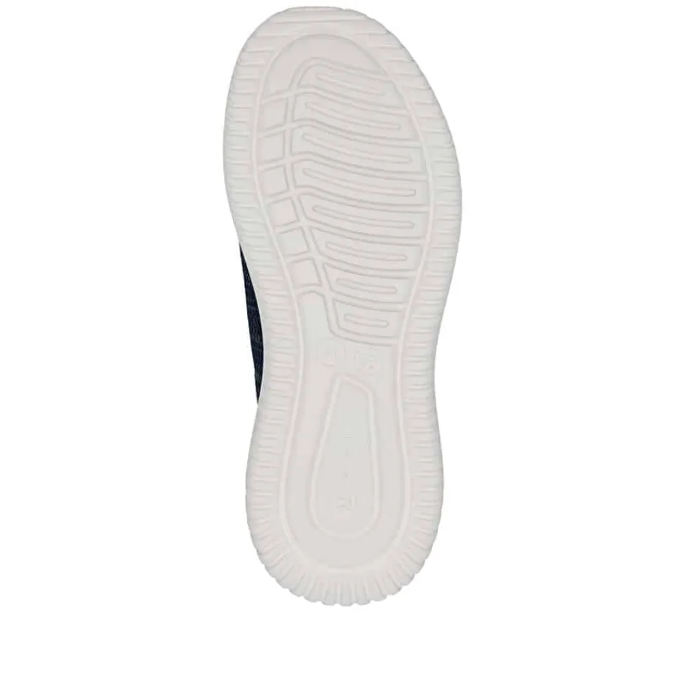 Rieker sneakers til herre i blå. Moderne sneakers til dig, der ikke vil gå på kompromis med hverken stil eller komfort. Modellen er udstyret med elastik foran, som giver en behagelig pasform og gør skoen nem i hverdagen. Indvendigt mødes foden af en blød sål samt ekstra bredde (G), der sikrer høj komfort og god rummelighed hele dagen. Ydersålen har et mønster, som giver øget stødabsorbering og skridsikkerhed ved hvert skridt.