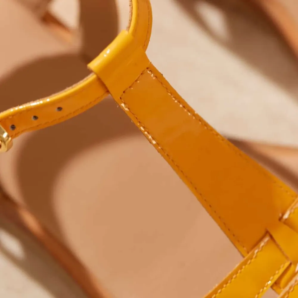 Angulus sandal til dame i orange. Flotteste orange sandal med stropper og justerbar ankelrem. Enkelt og elegant lak design, passer den til en lang række forskellige outfits og stilarter. Sandales overdel er lavet af det fineste læder, som giver en luksuriøs og behagelig pasform. De justerbare stropper og ankelremmen sikrer en tæt og støttende pasform, så du kan gå hele dagen uden at føle dig træt.