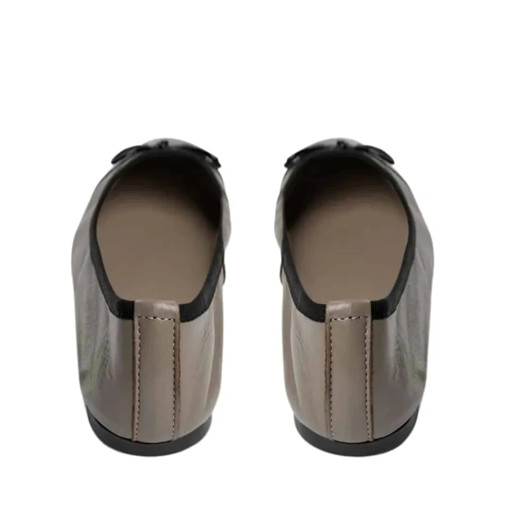 Sofie Schnoor ballerinasko til dame i mørk sand. Fuldend din garderobe med disse smukke ballerina sko fra Sofie Schnoor. Den sandfarvede læderoverdel og den laklakerede snude giver et stilfuldt udtryk, mens sløjfen på forfoden tilføjer et sødt element. Gummisålen med rillet mønster gør, at du står godt fast hele dagen, og skoene er almindelige i størrelsen for en perfekt pasform.